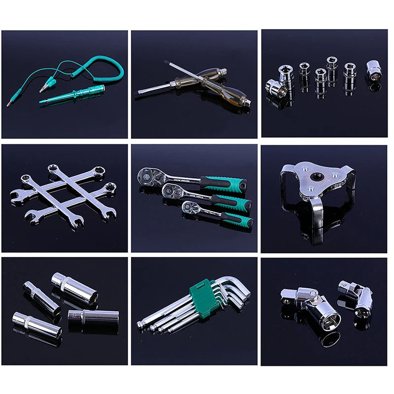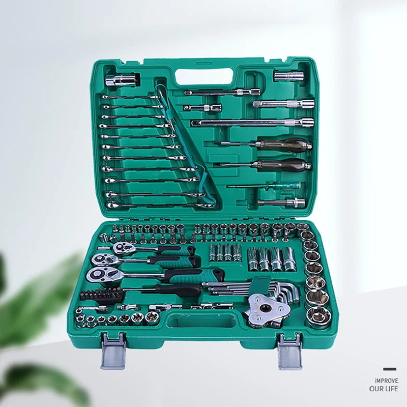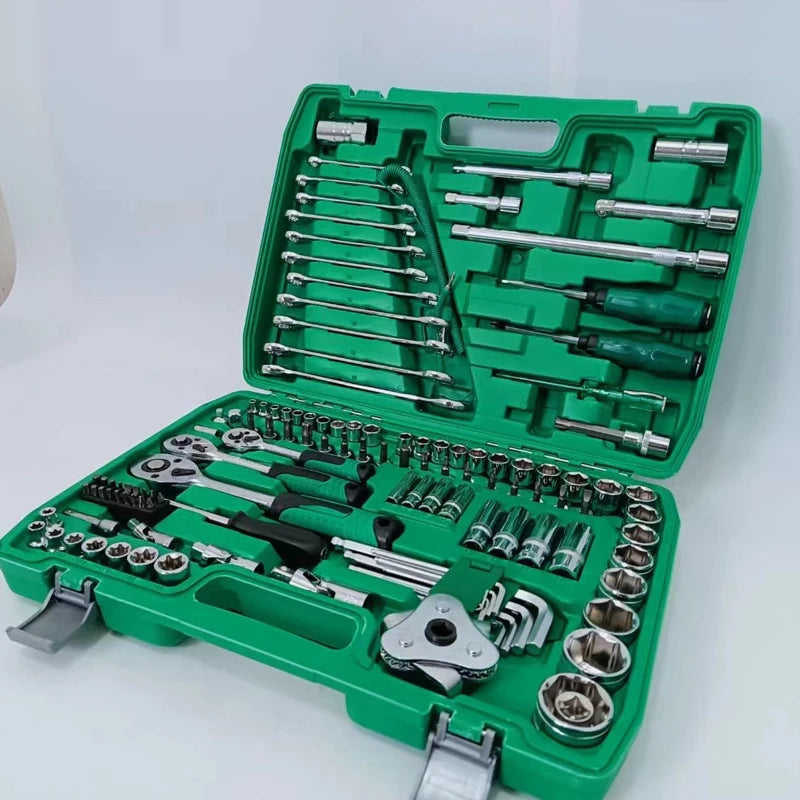 121 stuks 1/4" 3/8" 1/2" doppenset 10 stuks 1/4" doppen: 4, 5, 6, 7, 8, 9, 10, 11, 12, 13 mm