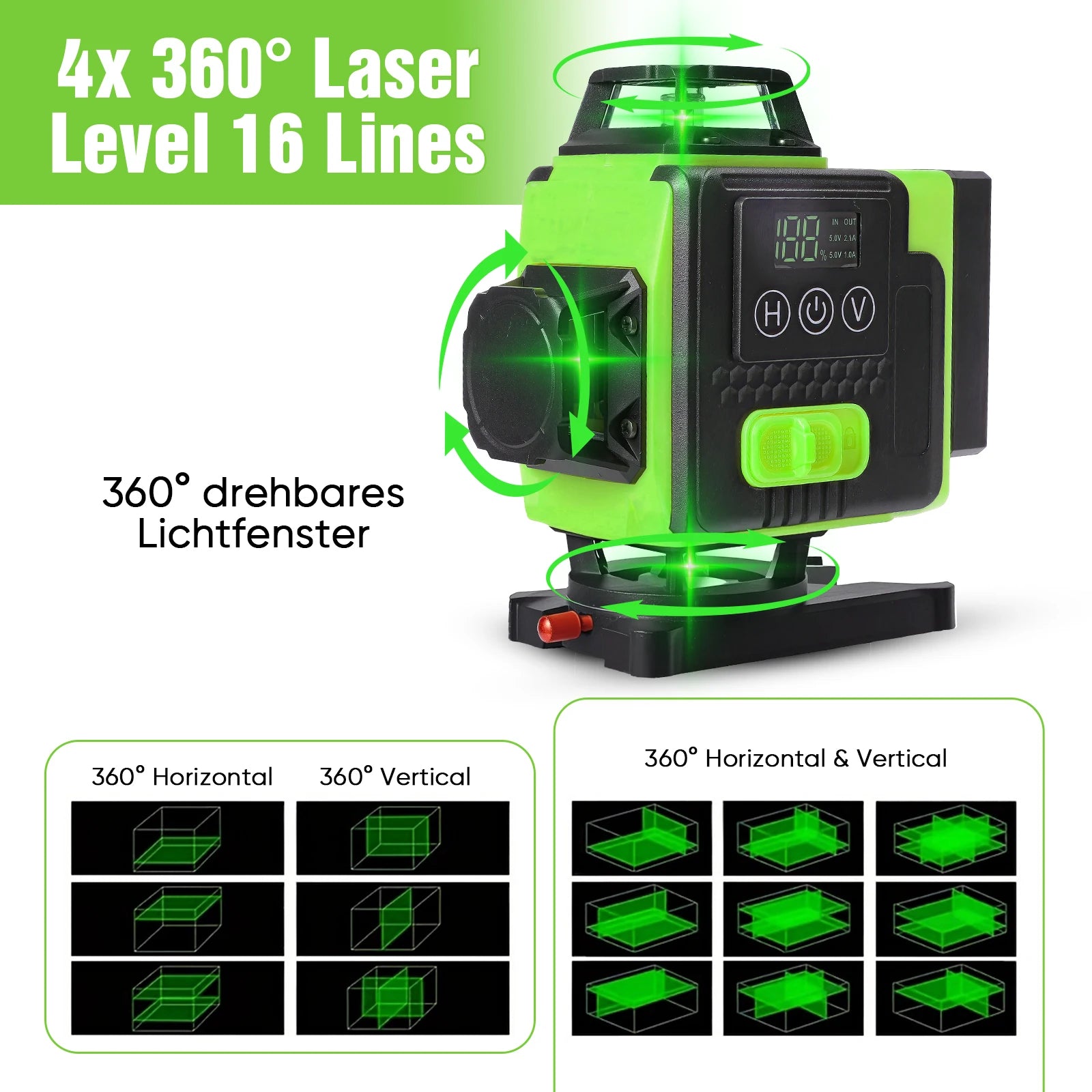 16 lijnen 4D-laserniveau met statief Afstandsbediening Oplaadbaar Zelfnivellerend 360 groene lijnnivellering met 2 grote Li-ionbatterijen
