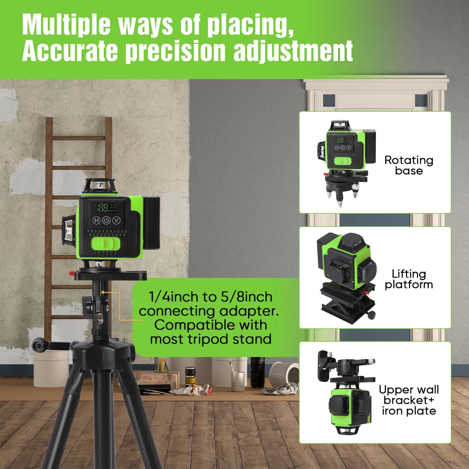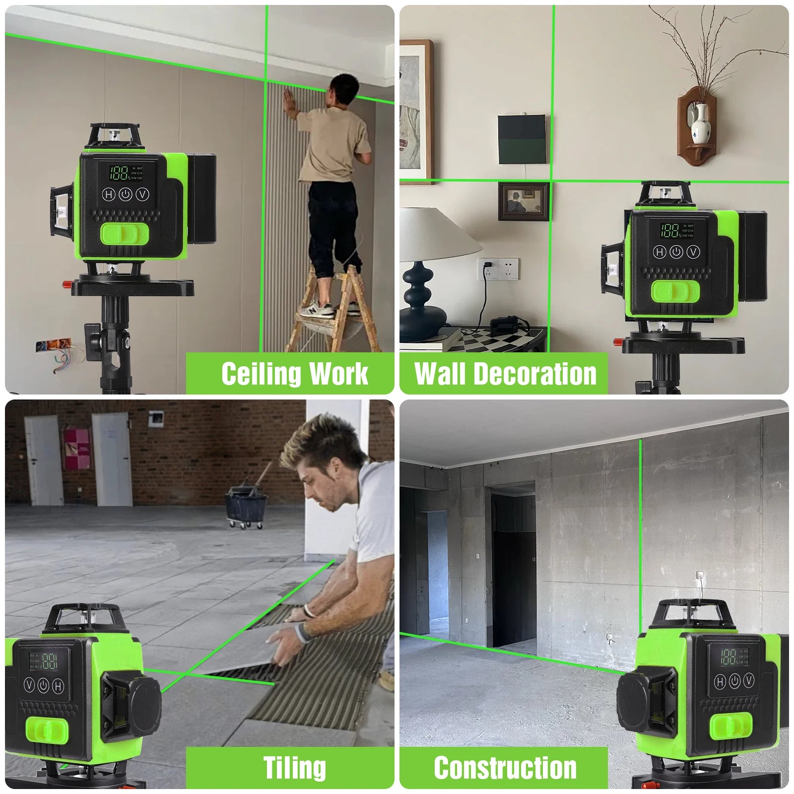 Voer 16 laserlijnen afzonderlijk of gelijktijdig uit, met fijnere positionering en een 3° zelfnivellerend systeem, flexibel en stabiel.