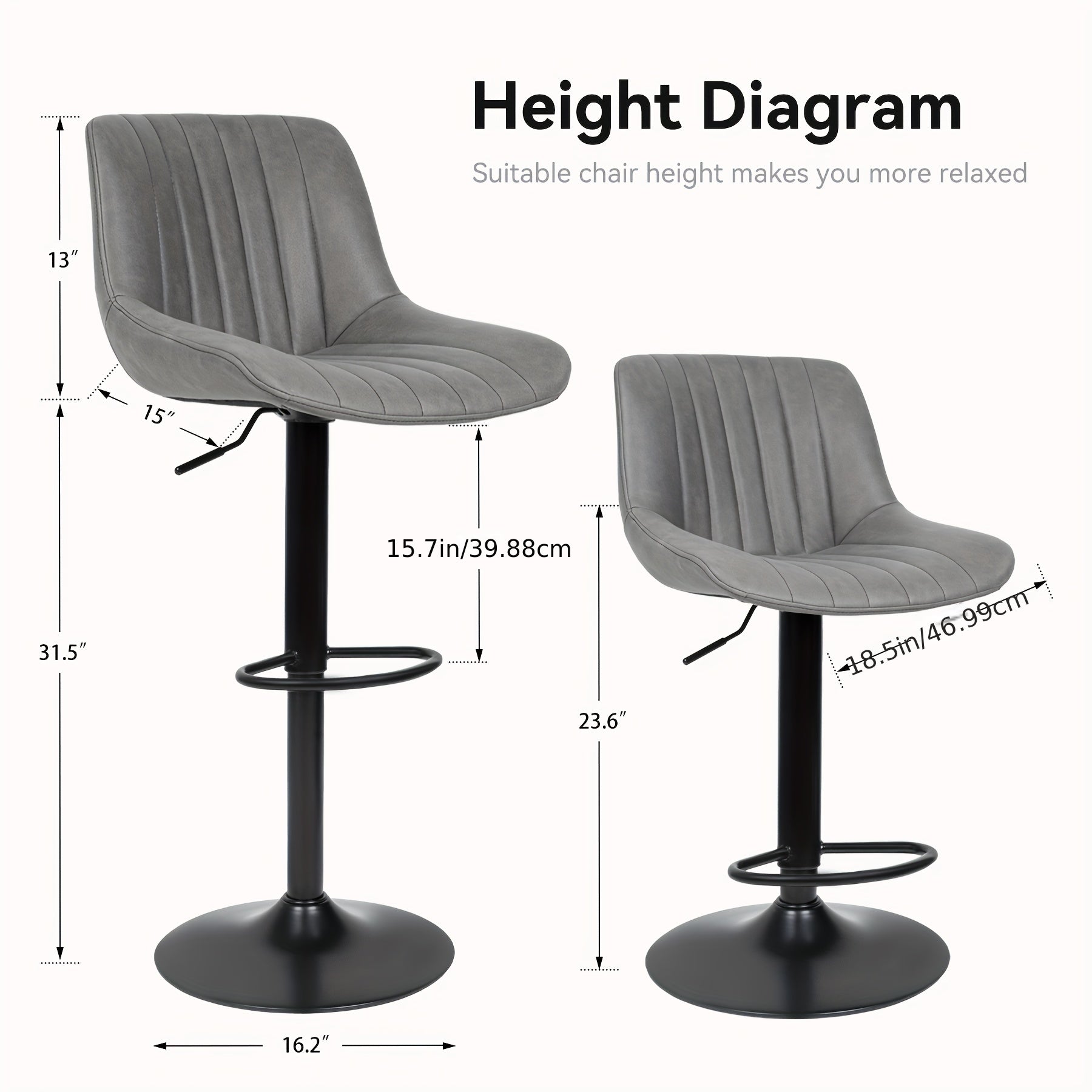Barkrukken set van 2 - Barstoel met rugleuning - Barkruk - Barstoelen - Grijs - Kerilyn