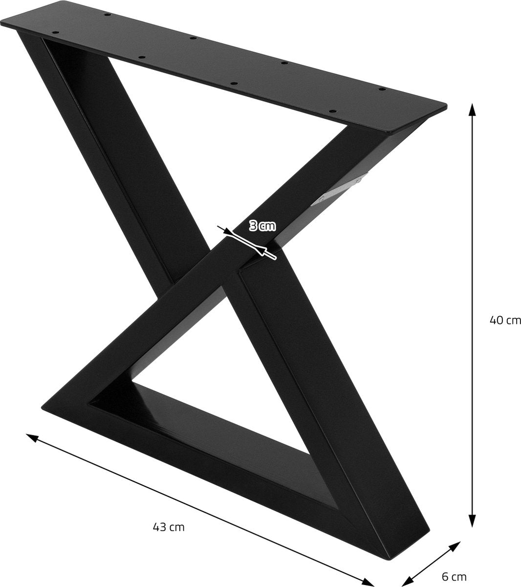 Kenmerken: Metalen tafelpoten met poedercoating X-vormige tafellopers Industrieel tijdloos ontwerp Hoge stabiliteit Zeer veerkrachtig Solide afwerking Professionele gelaste naden aan alle zijden Duurzaam en gemakkelijk schoon te maken Schoon te vegen met een droge doek Snelle en eenvoudige montage Praktische en nuttige vloerbescherming Hoge functionaliteit Voor de keuken, woonkamer, kantoor en nog veel meer Perfect voor een doe-het-zelf-tafel Kan universeel worden gebruikt De poten worden geleverd als set van 2 Inclusief montagemateriaal om het blad te bevestigen (houtschroeven)