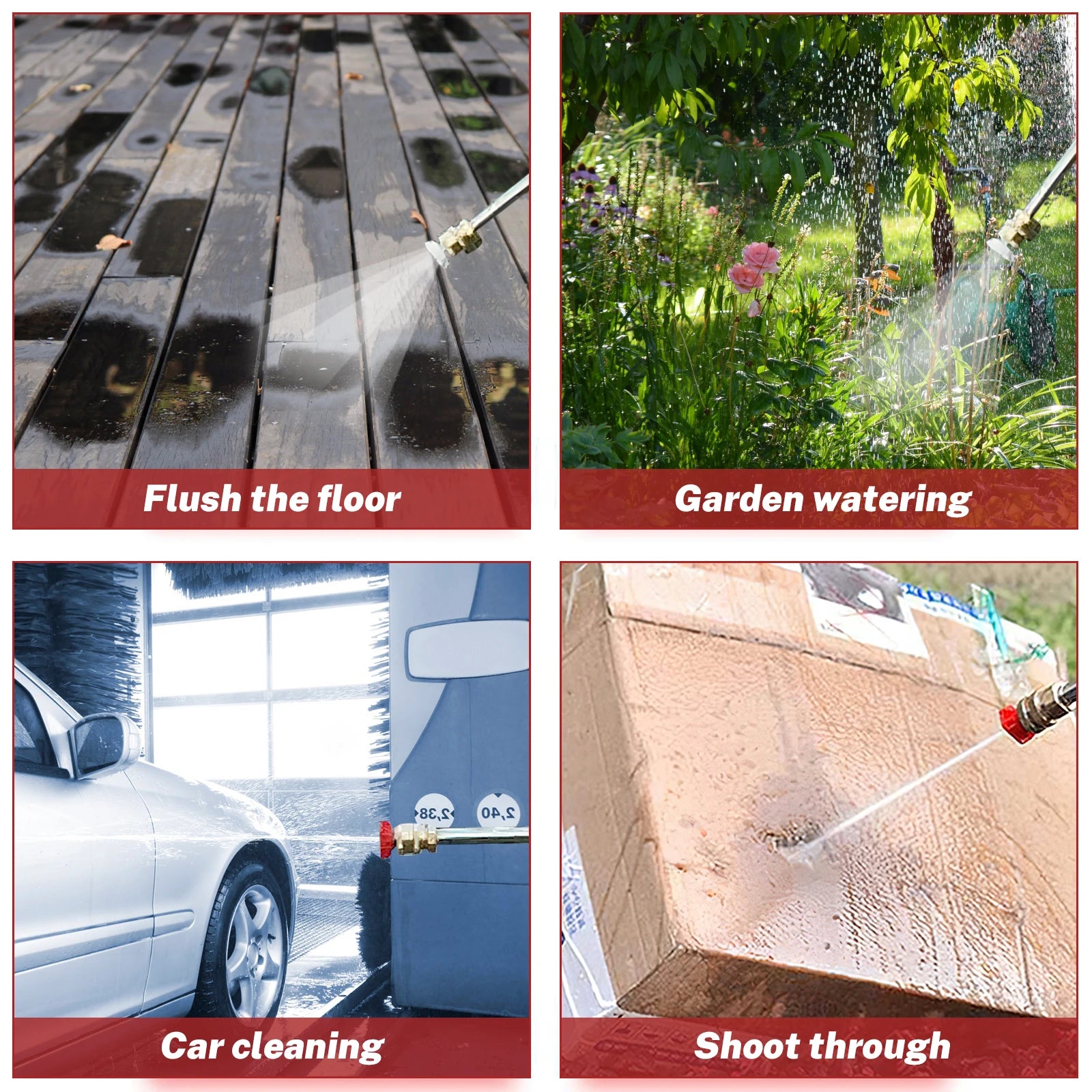 -Multifunctioneel waterpistool, vrij schakelende watertypen: roterend mondstuk, geleidelijk aan het aanpassen van de waterstroom van klein naar groot.