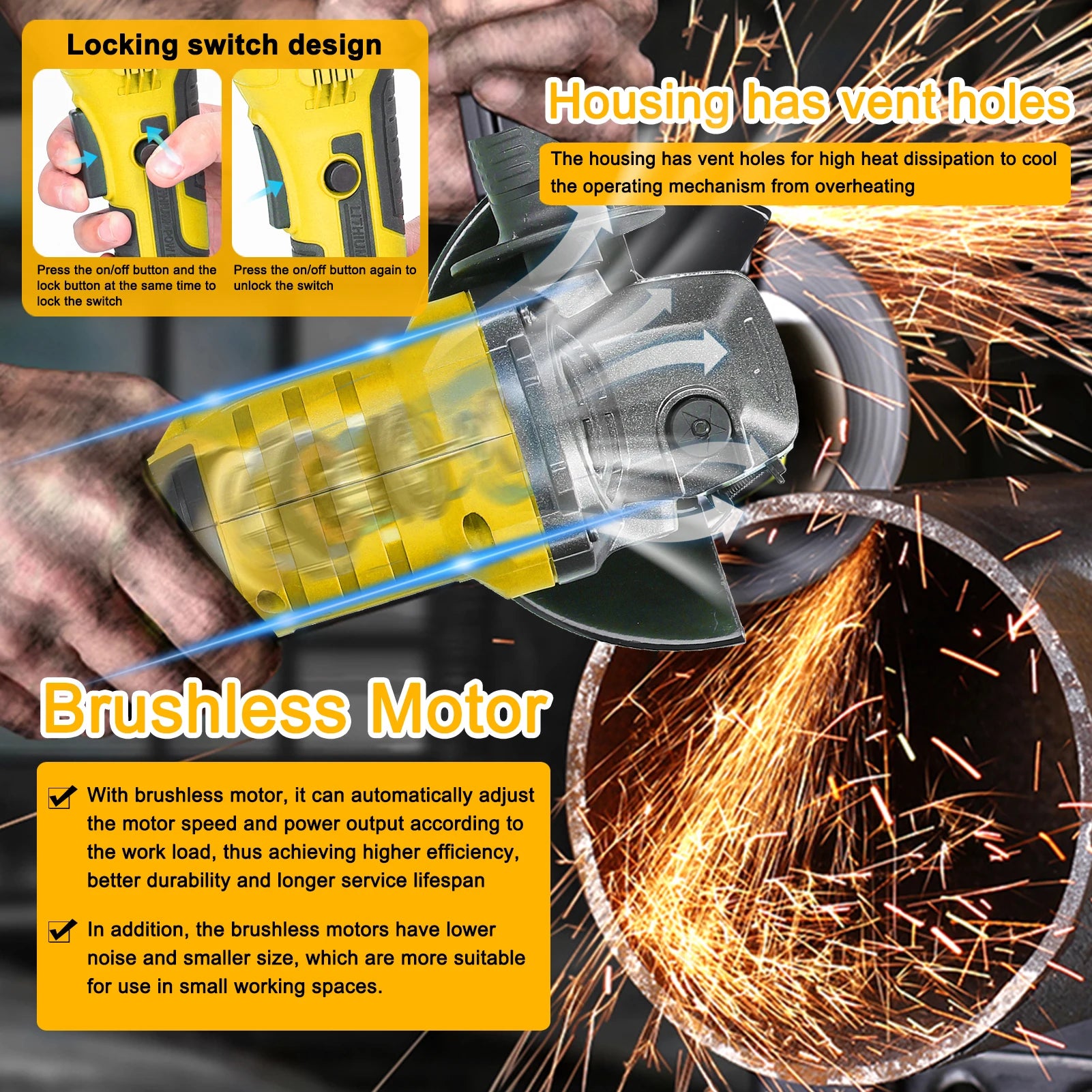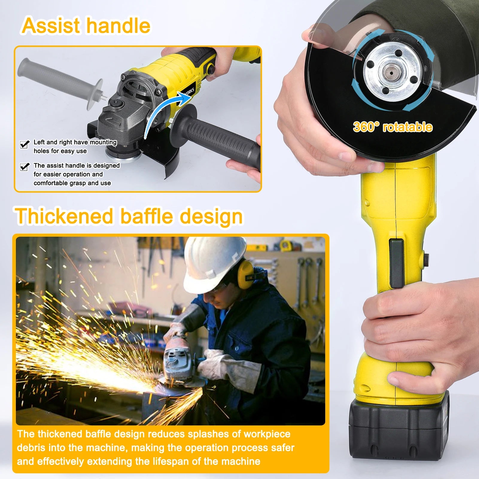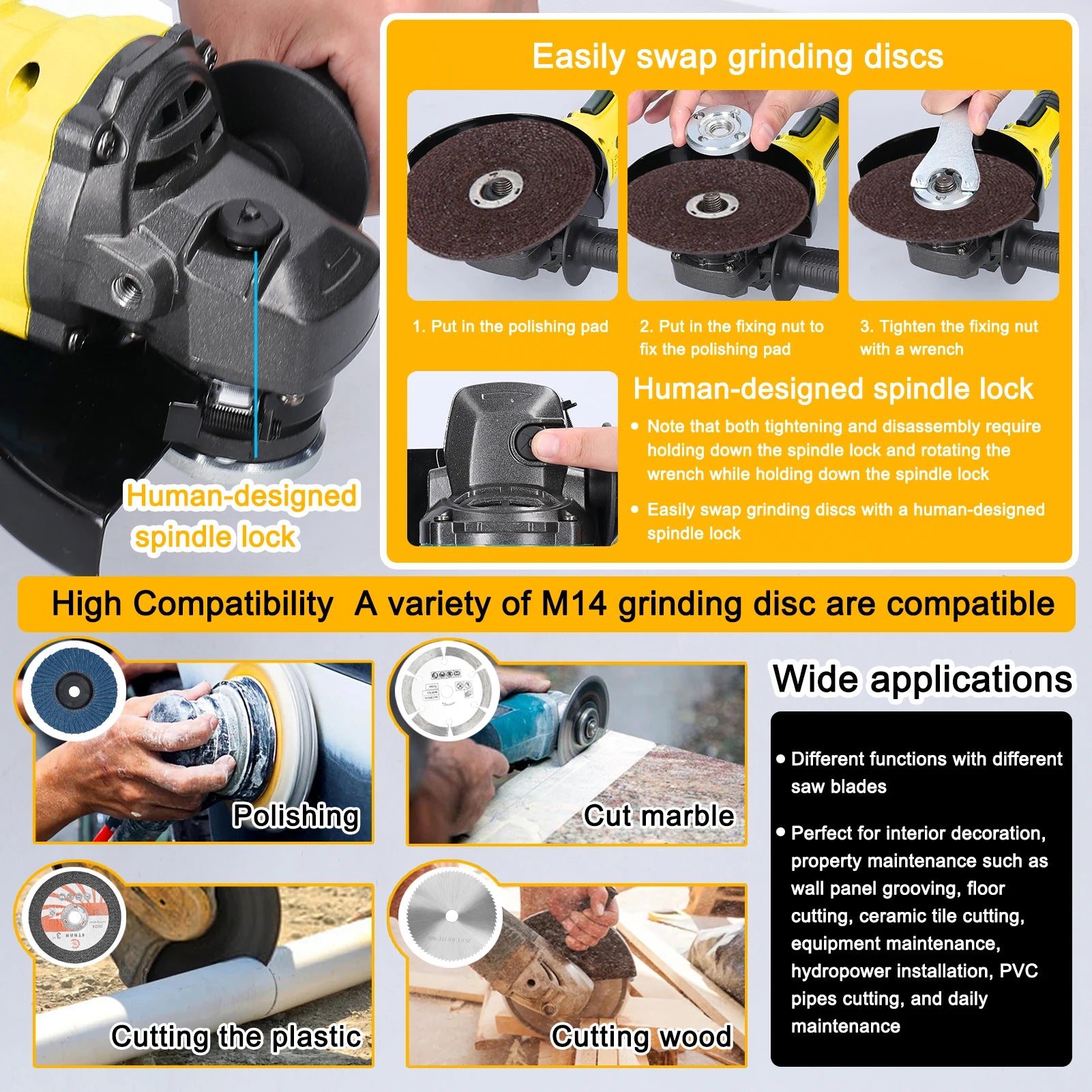 【Hoog efficiënt】:Vervang de slijpschijven eenvoudig met een door mensen ontworpen spindelslot.De hoge rotatiesnelheid zorgt voor hoge materiaalverwijderingssnelheden, waardoor u tijd en moeite bespaart en betrouwbaar en productief werk garandeert.