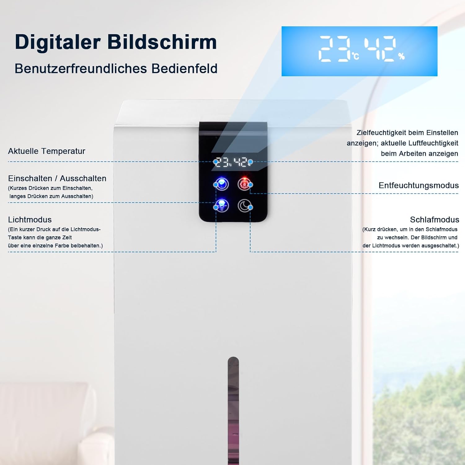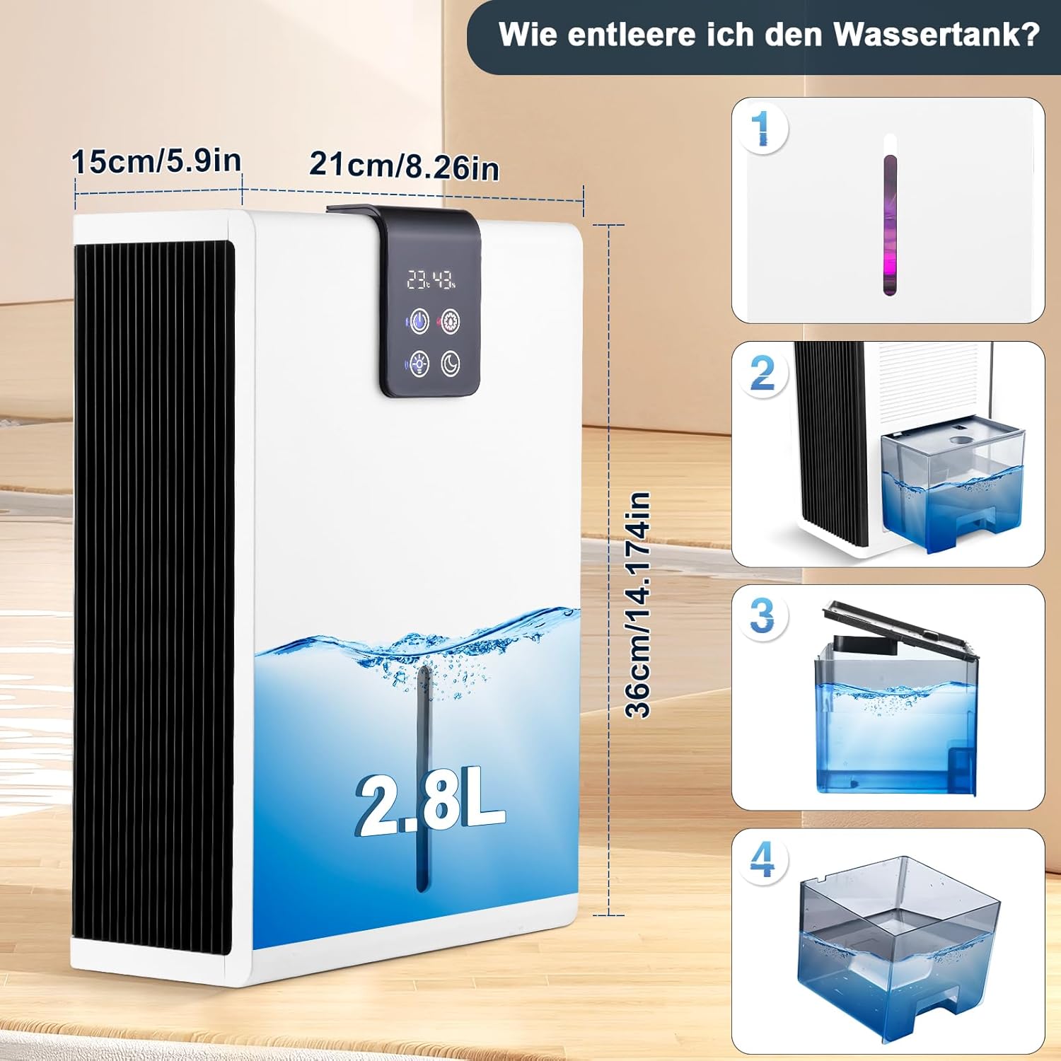 6) Ontvochtigingscapaciteit: 300 ml/dag (30 °C, 80% relatieve luchtvochtigheid).