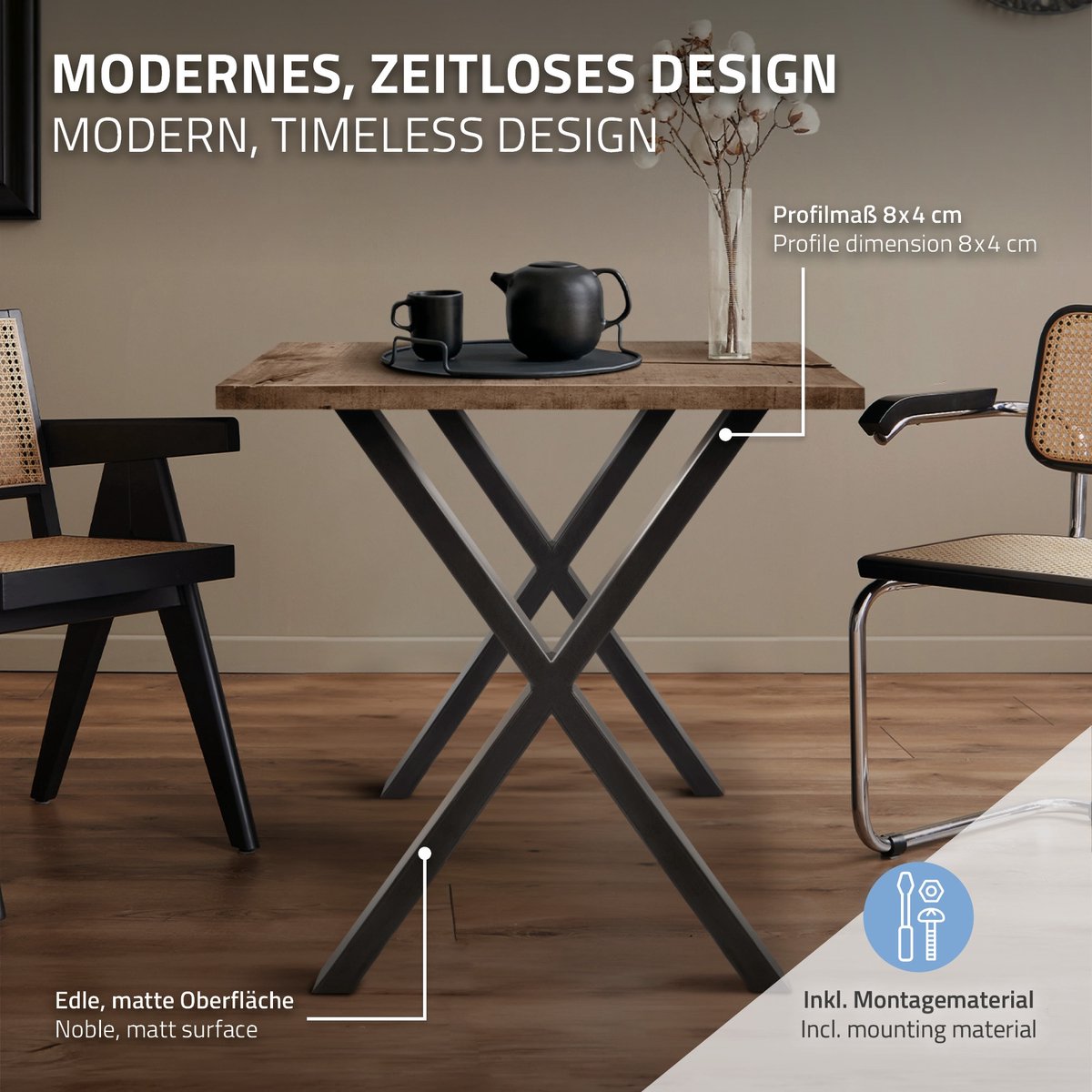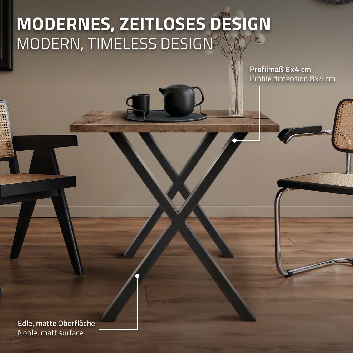 U kunt onze vintage tafelpoten ook in moderne interieurs gebruiken. De populaire industriële look wordt benadrukt en dankzij het eenvoudige uiterlijk openen zich verschillende toepassingsgebieden. Stevige, robuuste tafellopers bewijzen zich net zo goed binnenshuis als buitenshuis. Of het nu een warme, zonnige dag is, of stormachtig weer, uw tuintafel met stalen tafelpoten zal zijn werk doen.