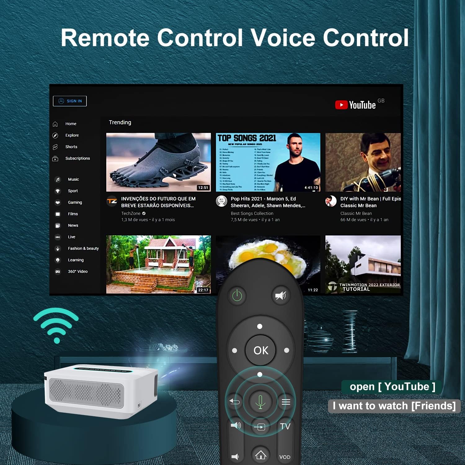 Als de afstandsbediening niet kan worden gebruikt, koppel deze dan eerst via bluetooth. Raadpleeg voor gedetailleerde stappen de video.Het wordt aanbevolen om in een relatief donkere omgeving te kijken voor de beste kijkervaring. Voor het beste duidelijke beeld, pas de scherpstelring langzaam aan voor het beste beeld. Overmatige keystone-correctie kan de helderheid van de projectie beïnvloeden. (Als het nog steeds wazig is, maak de projectorlens volledig verticaal op het scherm en mag de horizontale kantelhoek niet groter zijn dan ±15°).