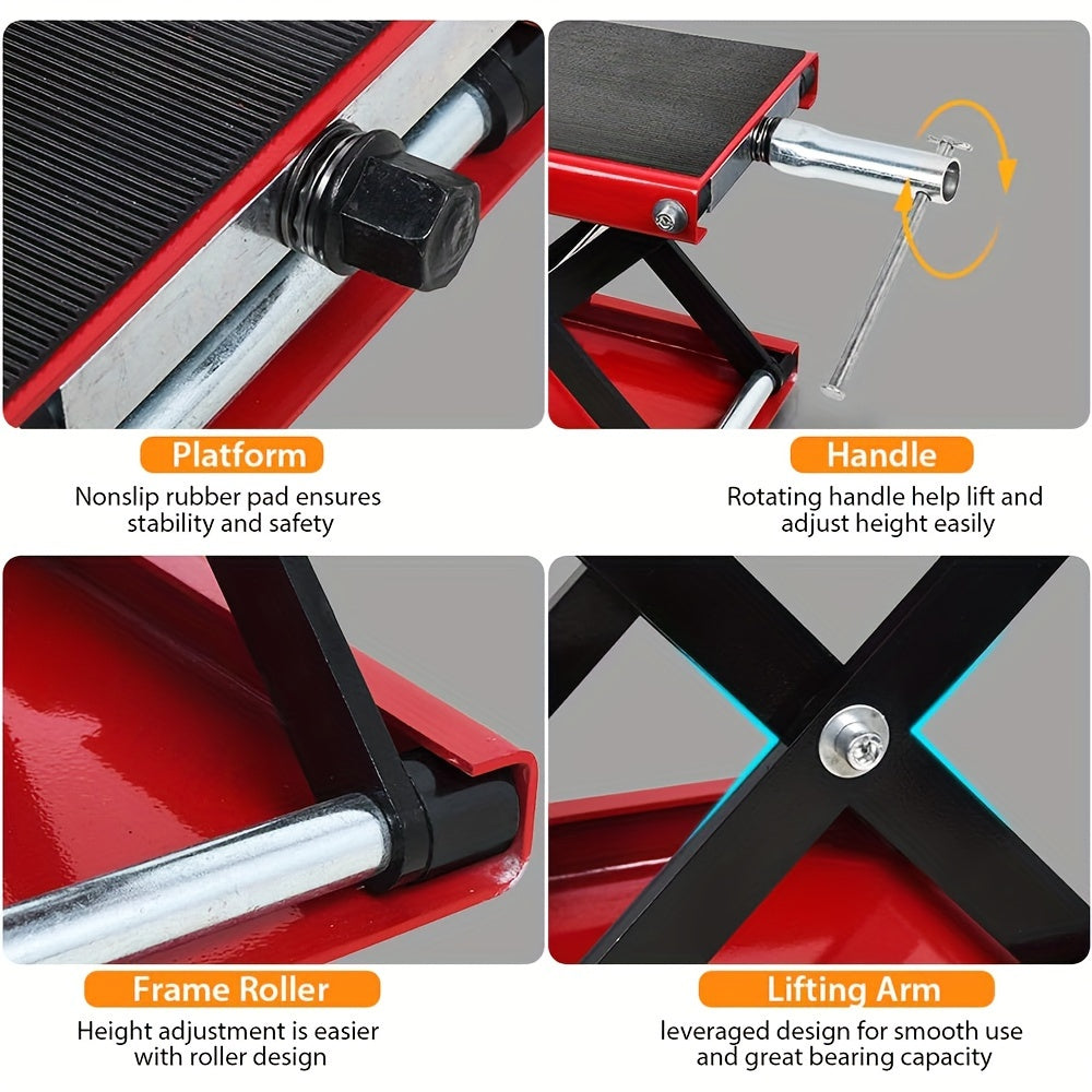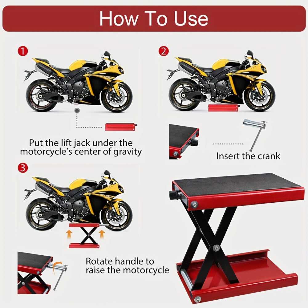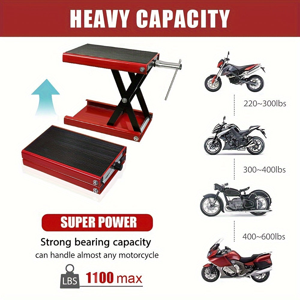 Zoek je een robuuste en betrouwbare manier om je motorfiets eenvoudig op te tillen voor onderhoud, schoonmaak of reparatie? Deze motorlift is de ideale oplossing. Met een draagvermogen van maar liefst 500 kg, een brede antislip-werktafel en een eenvoudig draaimechanisme til je jouw motor veilig en stabiel omhoog – zonder extra gereedschap.
