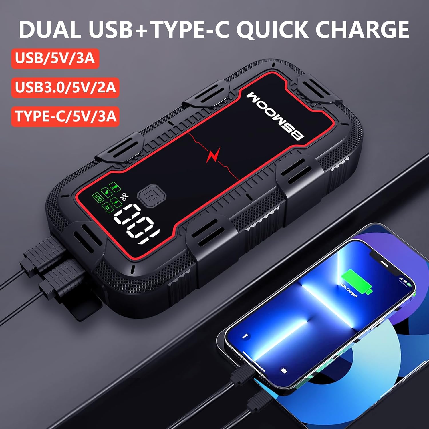 - 【Klanttevredenheidsgarantie】Wij bieden levenslange technische ondersteuning en 24/7 klantenservice om uw 100% tevredenheid te garanderen. Neem gerust contact met ons op als u vragen heeft. Het pakket bevat een starthulp, een draagtas, 12V-startklemmen, een USB-C-kabel en een gebruikershandleiding (Engelstalig).