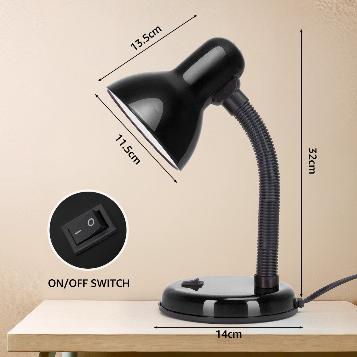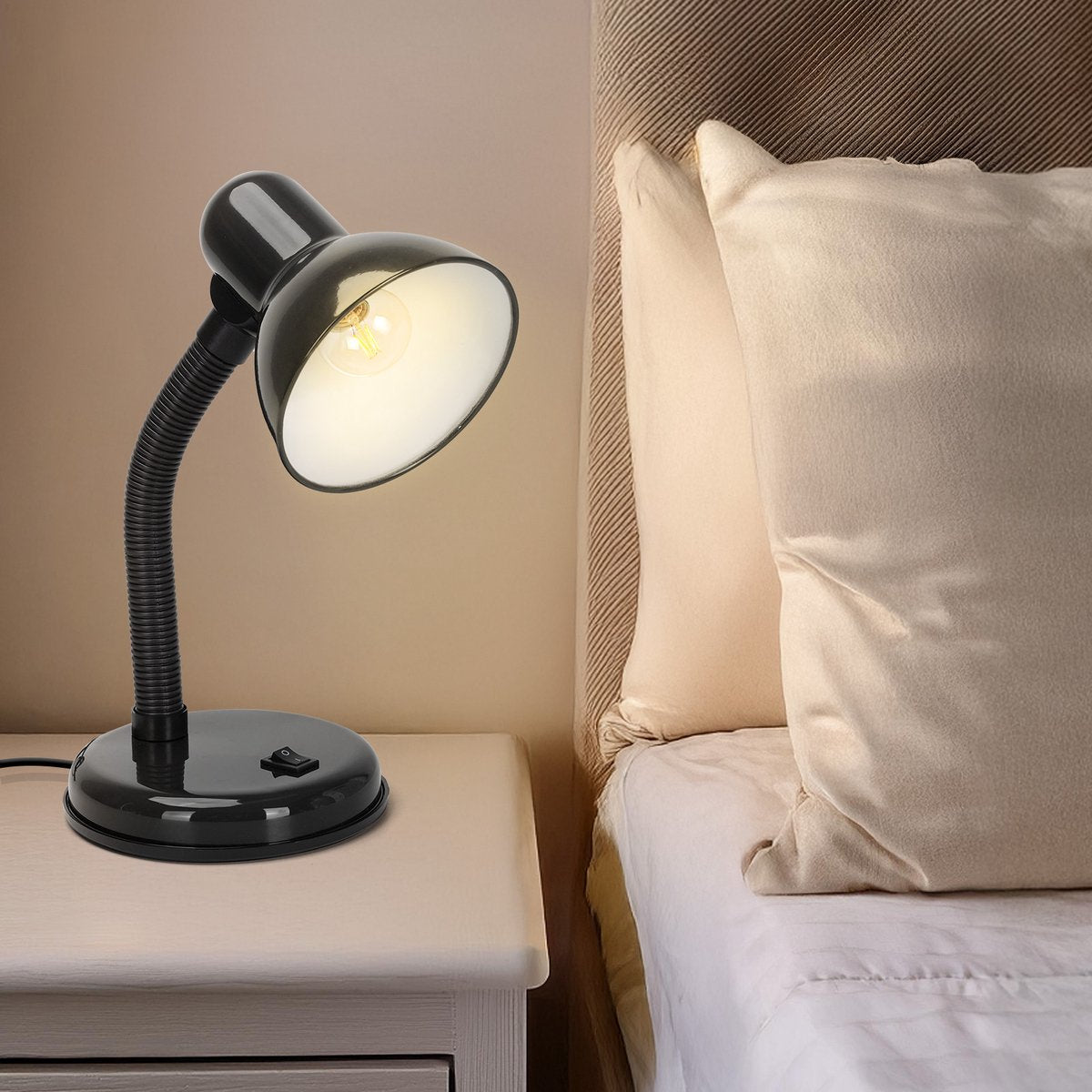 Flexibele slanghals: de flexibele slanghals van de lamp zorgt ervoor dat u het licht precies daar kunt richten waar u het nodig hebt. Pas de hoek en hoogte eenvoudig aan om uw verlichting te optimaliseren voor lezen, schrijven, studeren of andere taken.