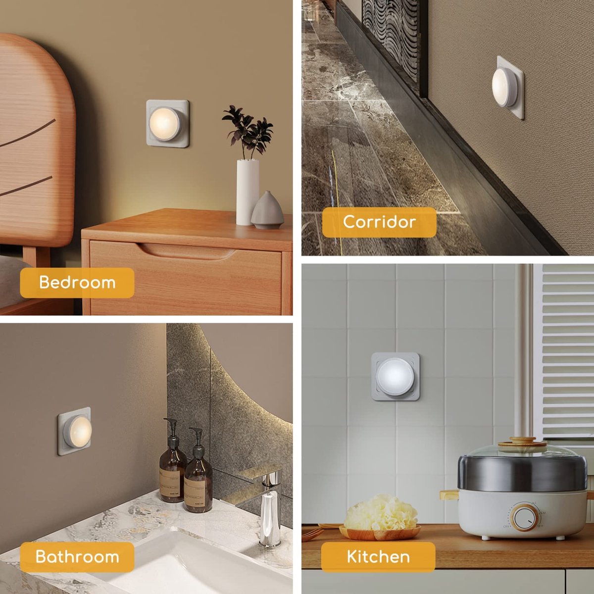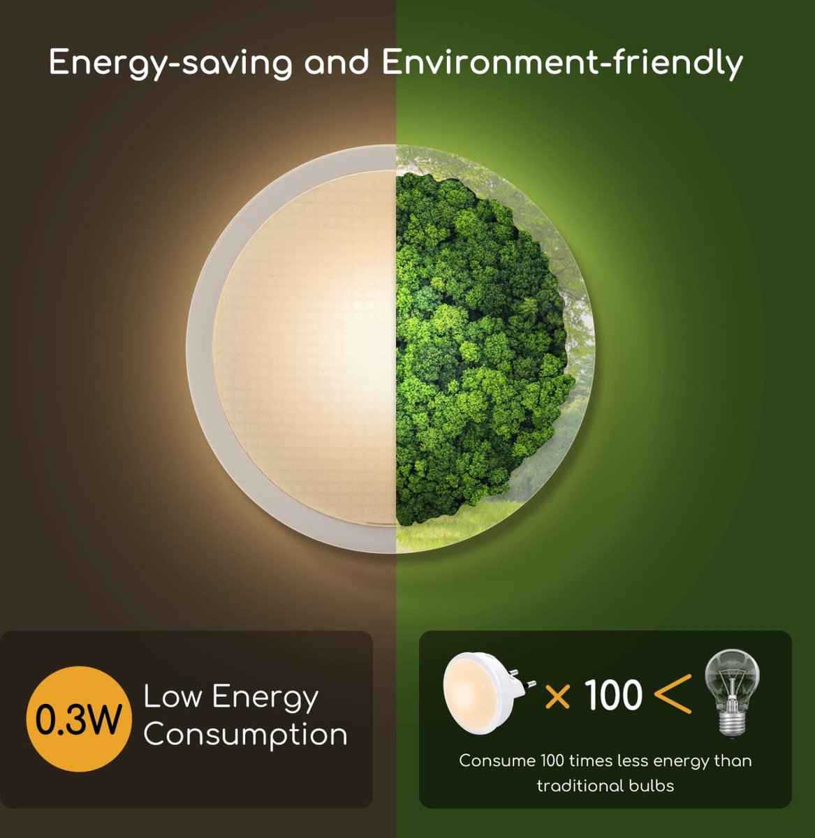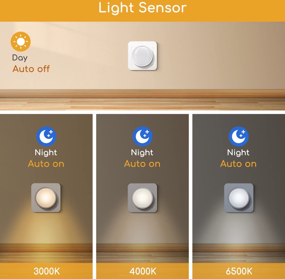 Deze eenvoudige nachtlampjes hebben een rond ontwerp en een energiezuinige LED. Ze creëren in elke kamer een rustgevende verlichting. Dankzij hun vermogen om licht waar te nemen, gaan ze 's nachts aan en in de ochtend uit, waardoor ze een geweldige keuze zijn voor mensen die wat extra hulp kunnen gebruiken bij het navigeren door hun slaapkamers, trappenhuizen, gangen en andere plekken tijdens de donkere uren.