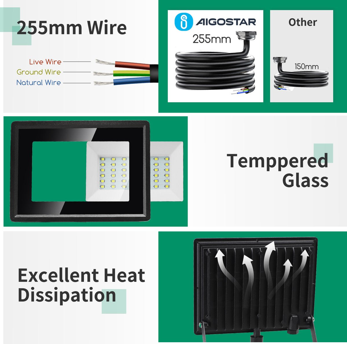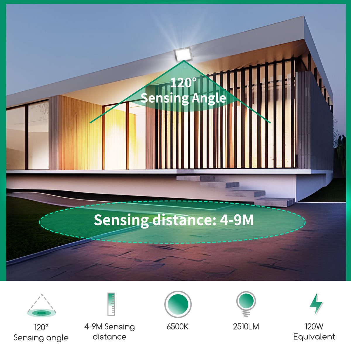 De Aigostar-schijnwerpers worden geleverd met een infraroodsensor voor het menselijk lichaam die onmiddellijk oplicht wanneer er beweging is in het sensorgebied. De PIR-detector is redelijk gevoelig en kan horizontaal worden afgesteld op 350 graden, en verticaal op 180 graden .SENS: De detectieafstand is maximaal 9 meter; TIJD: het verlichtingstijdbereik is 7 seconden tot 720 seconden; LUX: werkmodi kunnen voor de hele dag of alleen 's nachts worden ingesteld.