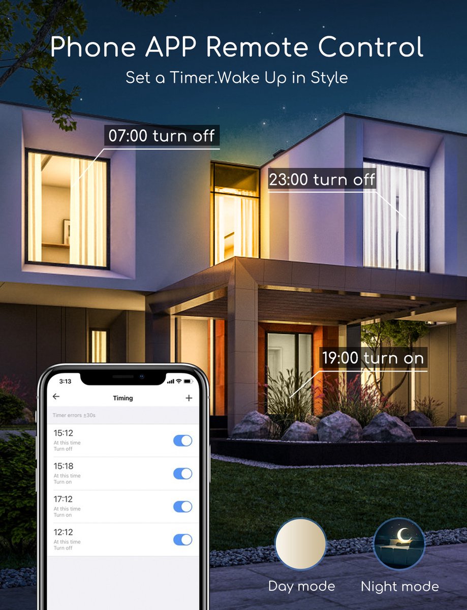 Stel eenvoudig de tijd in via de Aigosmart-app om de slimme lamp in en uit te schakelen wanneer je maar wil. Je kunt ook alle verlichting in je huis automatiseren met dezelfde set bedieningscommando's, waardoor je lampen overal in meerdere kamers op elk gewenst moment met één klik kunt bedienen.