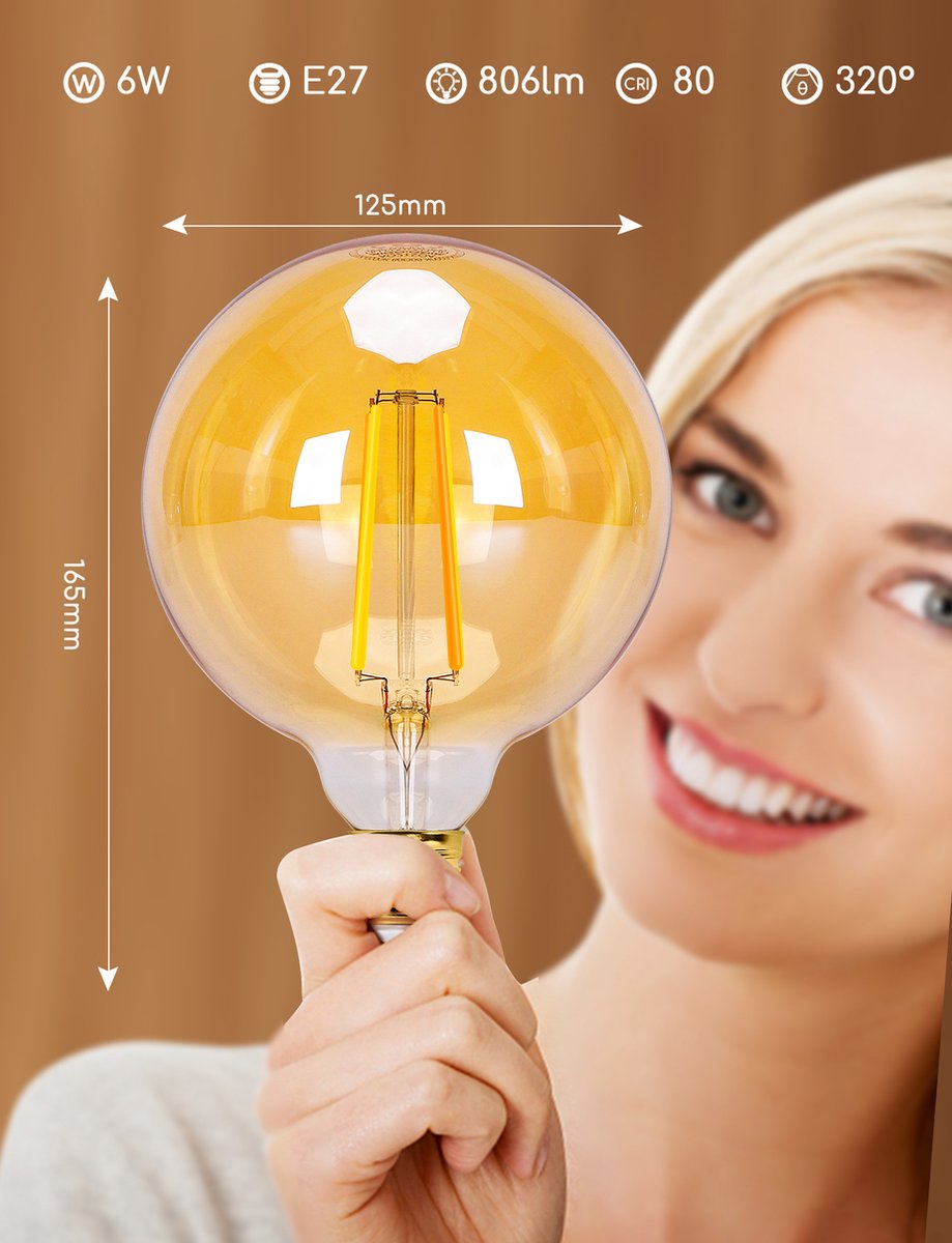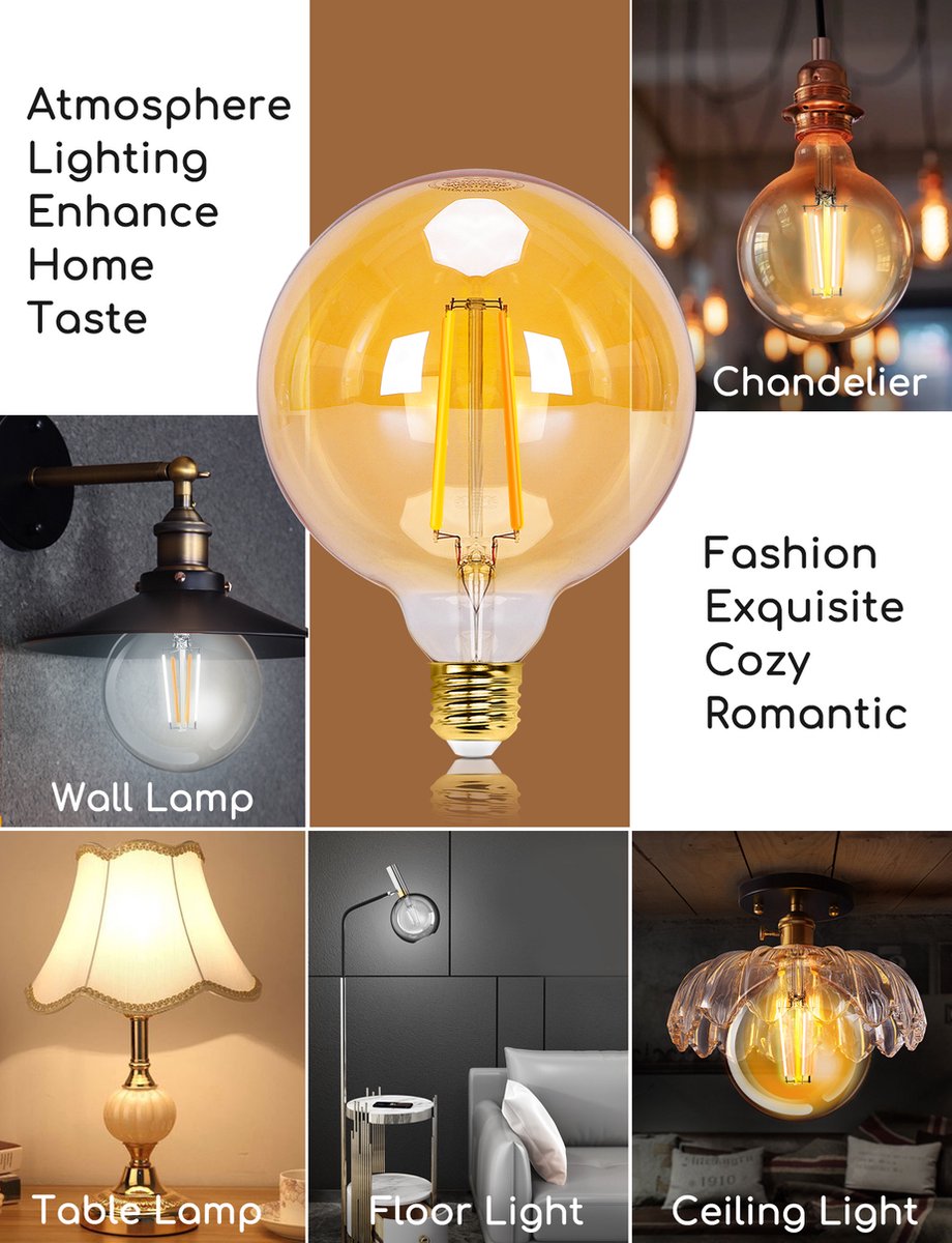 De slimme retro LED-lamp past in een standaard E27-fitting en heeft een 360° lichthoek, ideaal voor het brengen van de perfecte sfeer in je huis, restaurant, cafe, bar, etalage, enz. Ideaal voor hangers, plafondlampen, wandlampen, tafel- en vloerlampen, etc. CE-gecertificeerd, UV- en IR-vrij, flikkervrij. Zacht en onschadelijk voor ogen en huid.