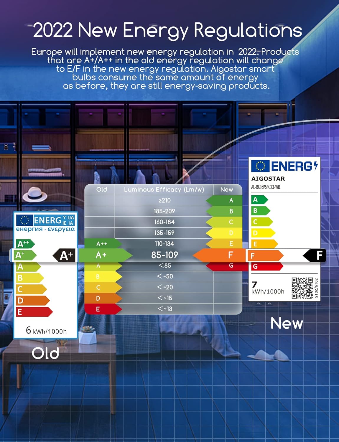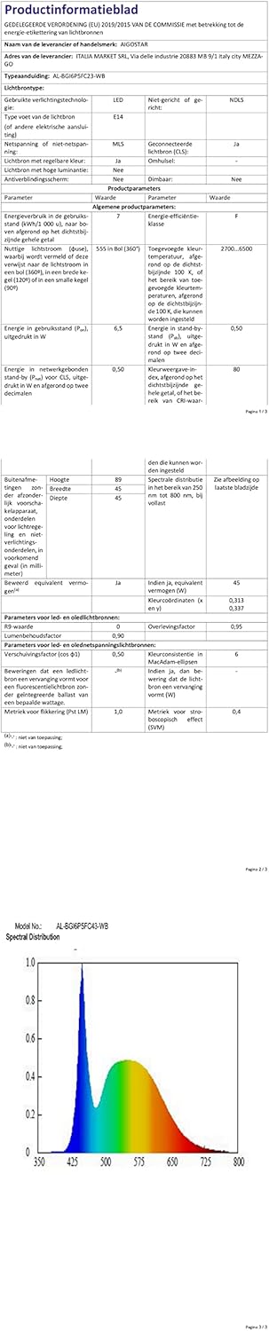 • Energiebesparend: Aigostar intelligente gloeilampen gebruiken led-technologie om je 6,5 W vermogen te geven met een energie-efficiëntieklasse van F, wat overeenkomt met een traditionele 45W-gloeilamp