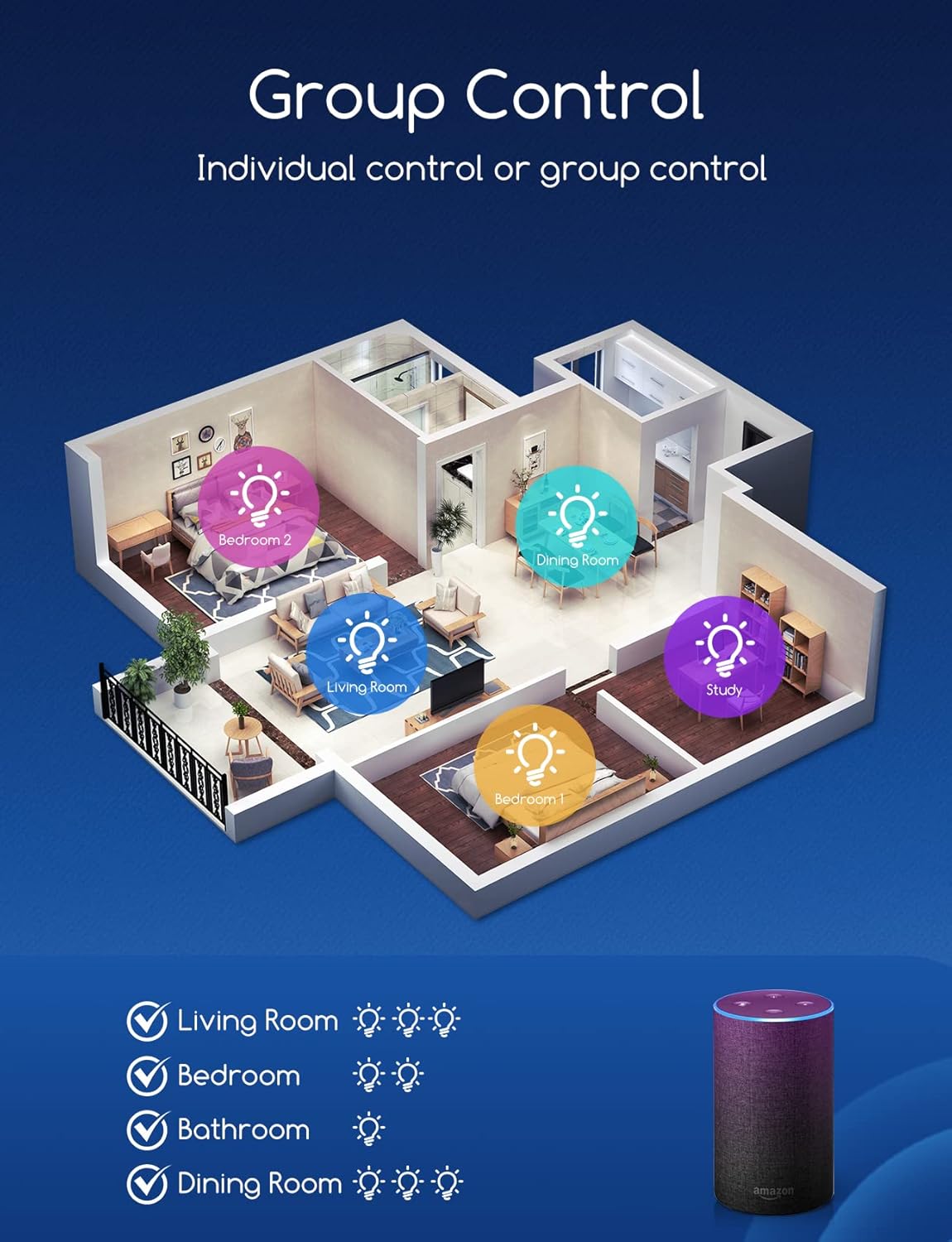 • Groepscontrole en aandeel: met de Aigosmart-app (iOS en Android) kunnen meerdere intelligente gloeilampen van hetzelfde model tegelijkertijd worden aangestuurd. En je kunt het apparaat met je gezin delen. Je kunt de intelligente gloeilampen ook thuis altijd en overal bedienen en het echte smart home-leven beleven