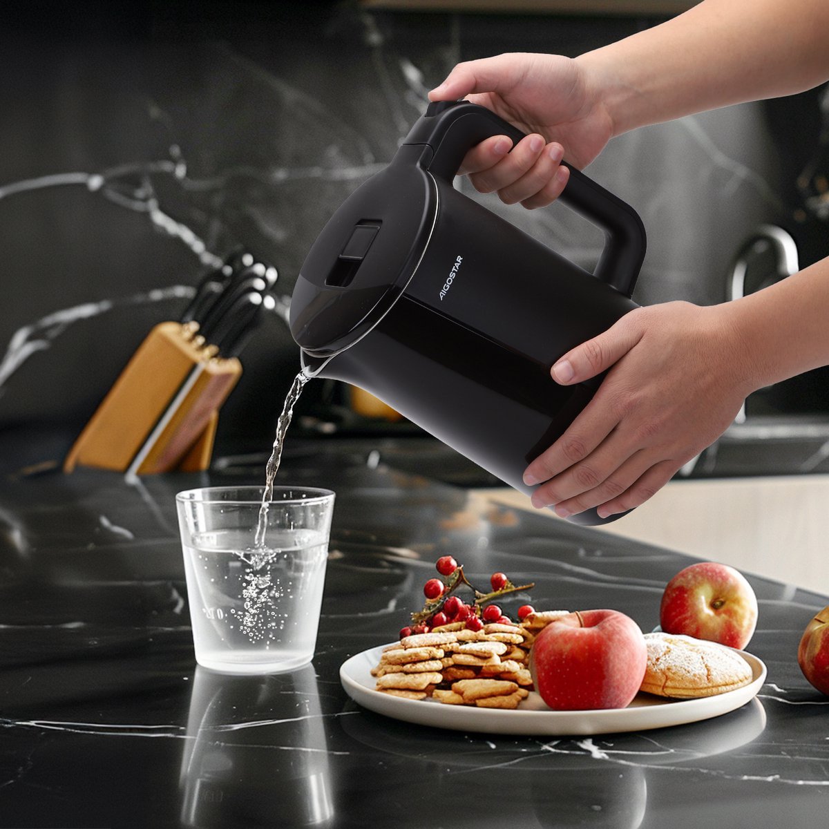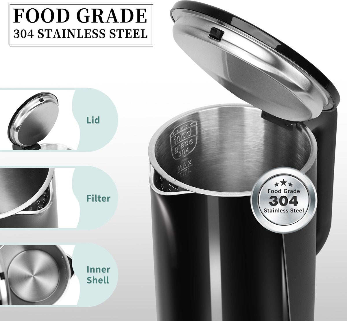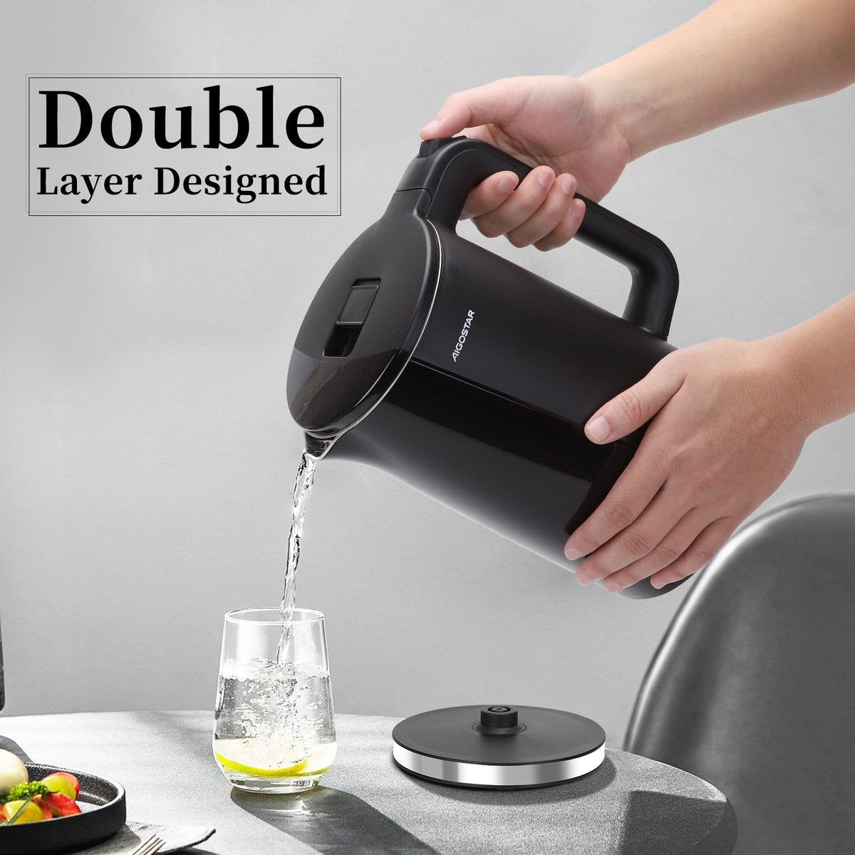 Onze waterkoker heeft een dubbelwandig ontwerp dat ervoor zorgt dat de buitenkant koel aanvoelt, zelfs wanneer de binnenkant aan het koken is. Dit anti-brandwonden ontwerp zorgt voor extra veiligheid voor jou en jouw familie, en het dubbelwandige ontwerp houdt de warmte langer vast.
