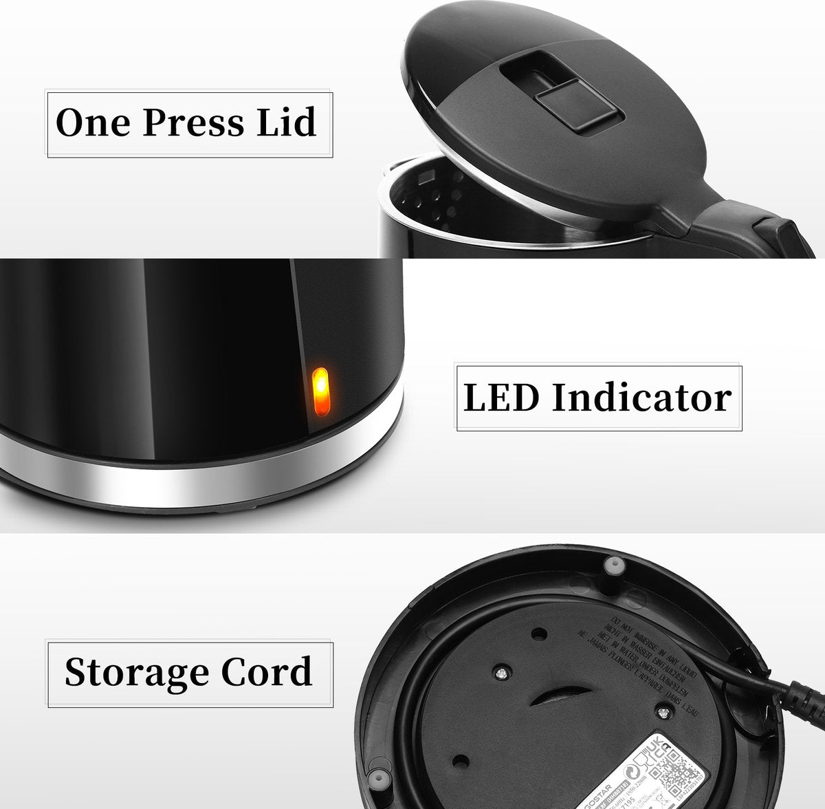De Aigostar waterkoker heeft een vermogen van 2200W en stelt je in staat om 1,5 liter water in ongeveer 5 minuten te koken. Met de oranje LED-indicator weet je precies wanneer het water kookt, waardoor het gemakkelijk is om hete thee, koffie of instant soep te bereiden. De waterkoker schakelt automatisch uit wanneer het water kookt, zodat je niet hoeft te wachten en je geen zorgen hoeft te maken.