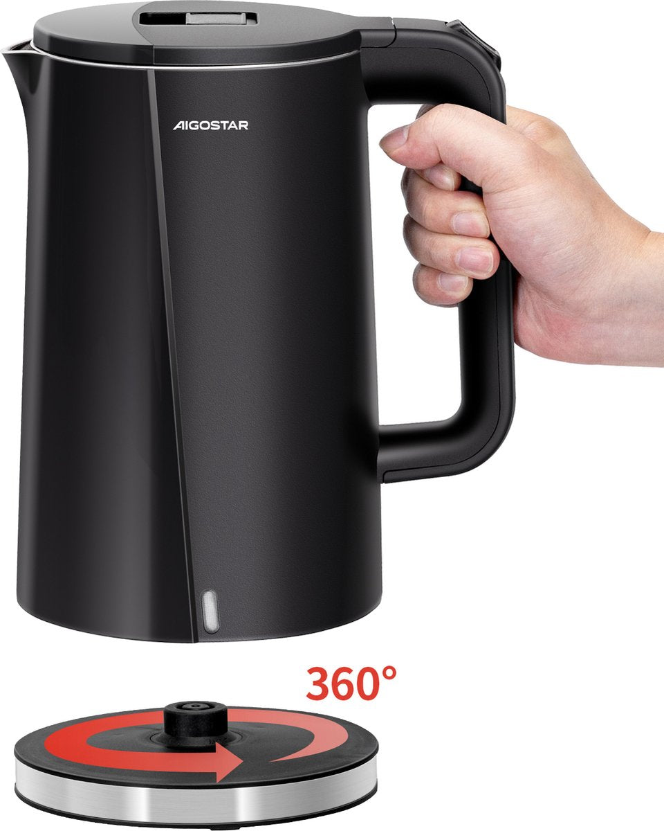 De Aigostar Aubrey heeft een vermogen tot 2200W en kan 1,7 liter water in ongeveer 5 minuten koken. Met behulp van de oranje LED-lamp weet je precies of het water kookt. Het kan automatisch uitschakelen nadat het water kookt. Het heeft een koele buitenkant, dus je hoeft je geen zorgen te maken over brandwonden. Bovendien is de waterkoker waterdicht en heeft het een schaalverdeling. Je kunt het gebruiken om snel en gemakkelijk jouw dagelijkse thee en koffie te bereiden.