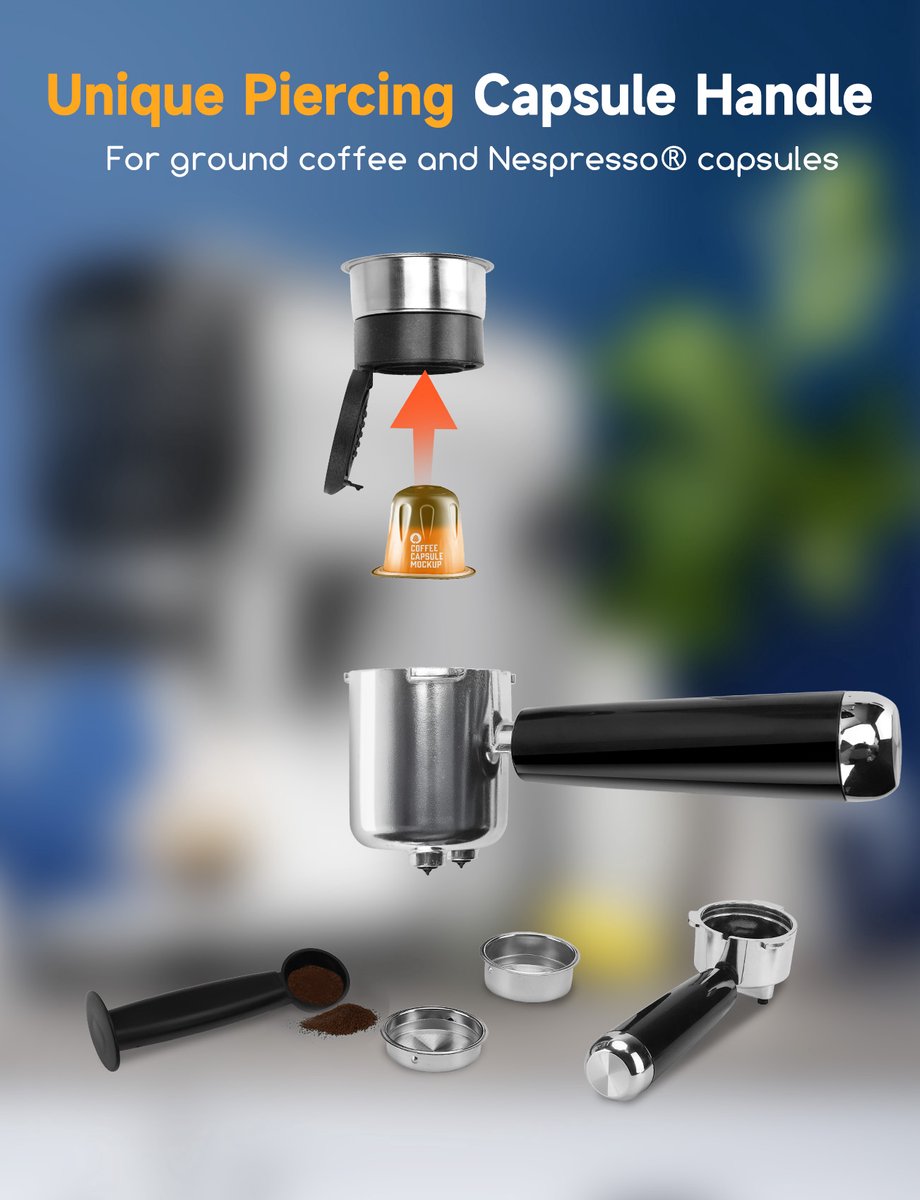 Een semi-automatische 2-in-1 Espressomachine met een professionele pomp van 20 bar en een krachtige motor van 1350 W. Nauwkeurig ontworpen en betrouwbare prestaties van het hogedrukpompsysteem, dringt gemakkelijk door koffiepoeder en extraheert de subtiele smaken en hoogwaardige geuren van elke capsule bij constante temperatuur, wat resulteert in een rijke laag koffieolie. De Aigostar espresso-podmachine is compatibel met Nespresso-capsules voor zelfgemaakte koffie.