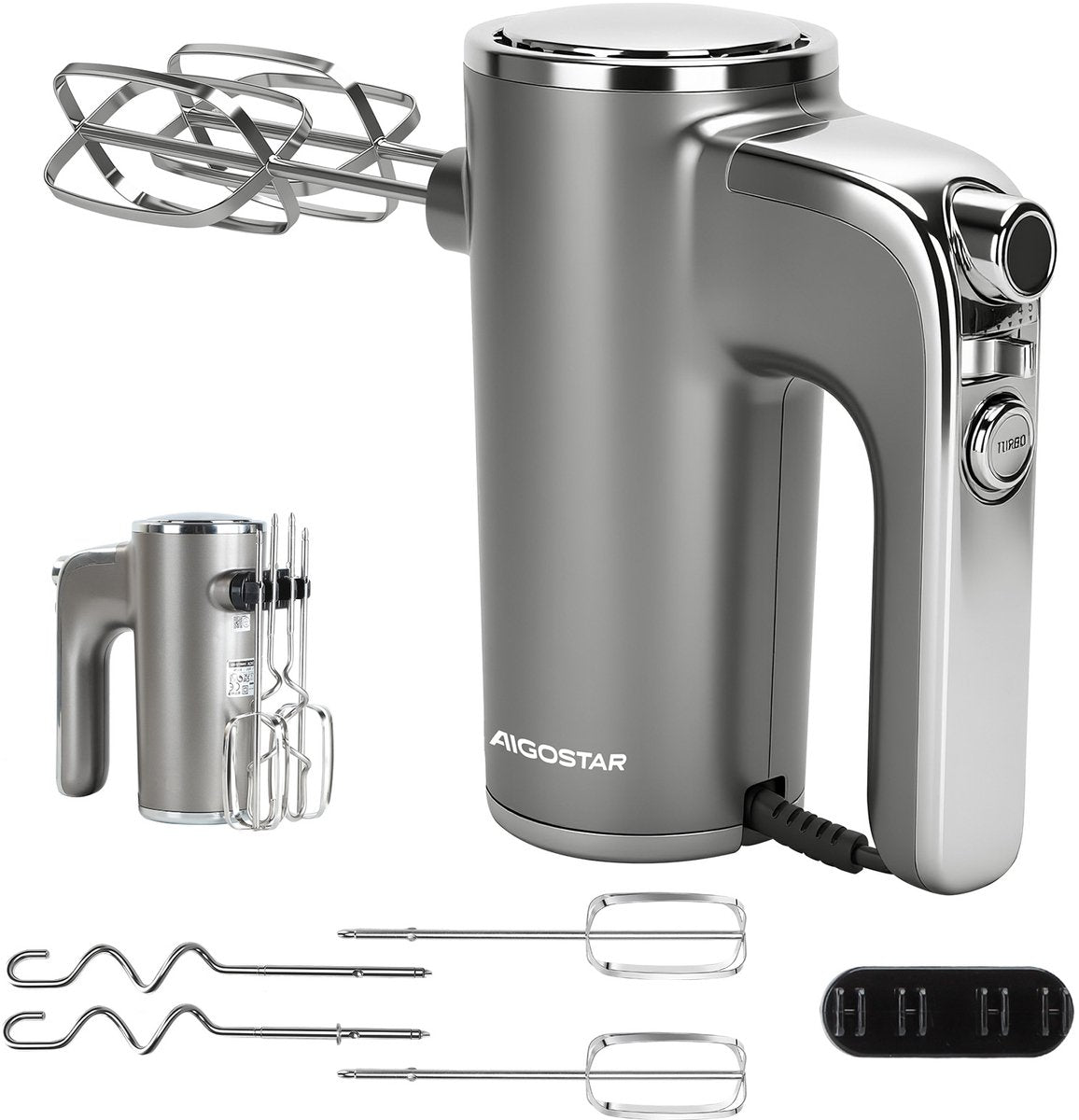 De mixer wordt geleverd met 2 roestvrijstalen gardes, 2 roestvrijstalen deeghaken en 1 opbergstandaard. Dankzij geavanceerde motortechnologie en materialen is het gewicht aanzienlijk verminderd, waardoor keukenklussen lichter en minder inspannend worden.