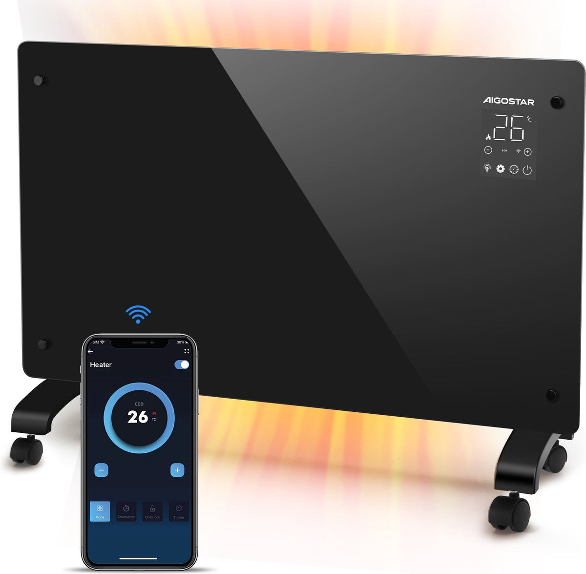 Met de AigoSmart-app op je telefoon kun je de radiator via WiFi bedienen. Je kunt de modus, temperatuur, aftellen, weektimer en 24-uurs timer allemaal via de app instellen. Verwarm vooraf alvast de kamer, zodat je thuiskomt in een verwarmde kamer. Daarnaast is het ook met spraak bediend worden met Google Home en Amazon Alex.