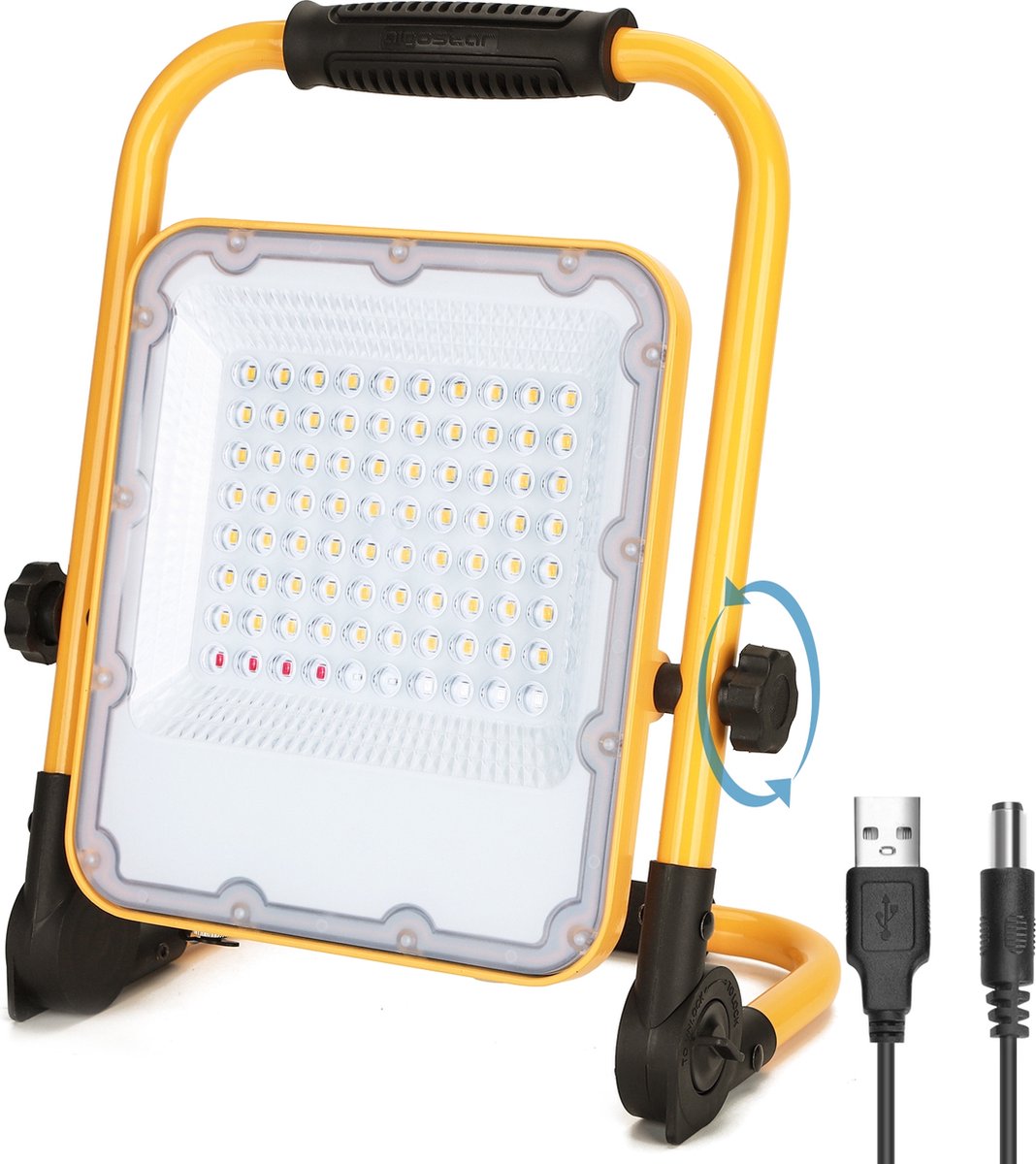 De werklamp is gemaakt van een gegoten aluminium behuizing en pc-materiaal, dat slijtvast en valbestendig is. Het is zeer licht en opvouwbaar, wat gemakkelijk te dragen is. De werklamp is 360 graden draaibaar zijn en de standaard heeft een hoekverstelling van 180 graden, volgens uw behoeften.