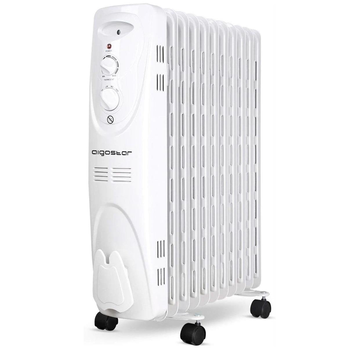 Met de elektrische Aigostar 33IEJ radiator is het in je kamer nooit koud. Deze olieradiator bestaat uit 11 ribben en is via 4 zwenkwieltjes heel makkelijk te verplaatsen. Stel met de regelbare thermostaat de gewenste warmtestand in en dankzij een krachtige power van 2300W is de ruimte in no time verwarmd. Veiligheid wordt optimaal gewaarborgd door een omval- en een oververhittingsbeveiliging. Bovendien is de Aigostar 33IEJ voorzien van een handige snoeropbergruimte. De bredere uitsparingen maken het mogelijk dat de lucht zich sneller verplaatst waardoor de ruimte sneller wordt verwarmd. Bij de bereikte temperatuur slaat de radiator automatisch af.
