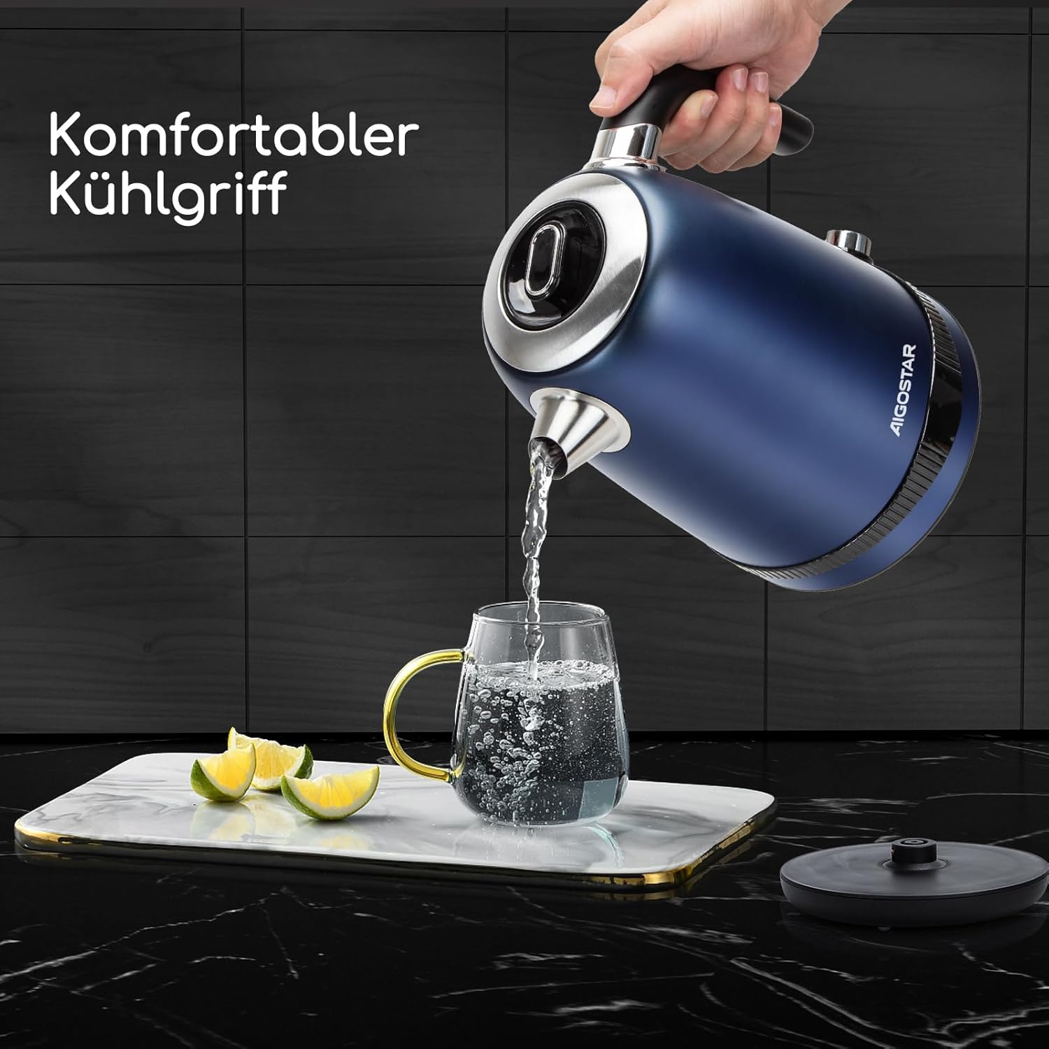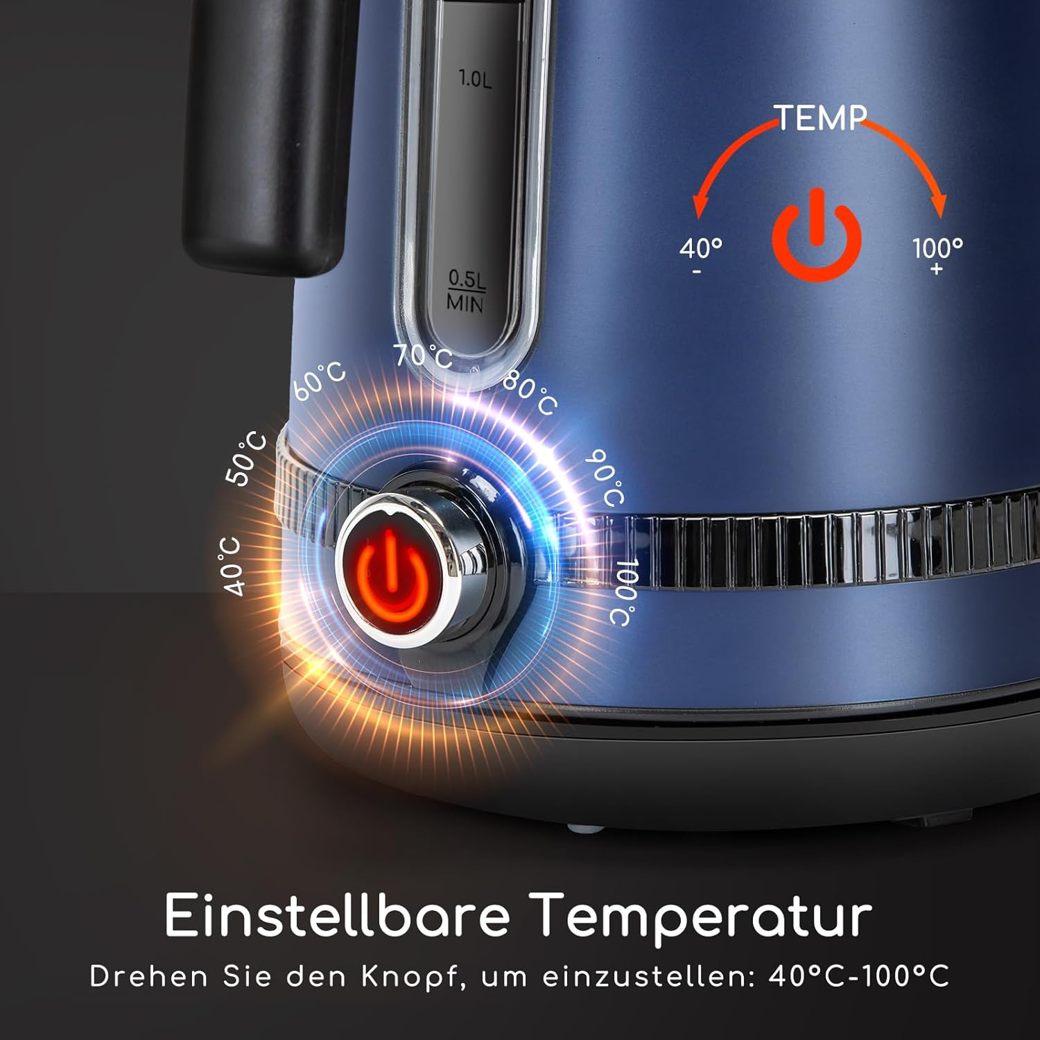 Retro en elegant, de schoonheid van de keuken: de waterkoker heeft een klassiek retro-design met mat donkerblauw voor een ingetogen en hoogwaardig gevoel. De bediening van de touch-draaiknop is soepel, de technologie is onzichtbaar. Het verborgen kabelontwerp op de bodem zorgt voor orde en elegantie in de keuken.