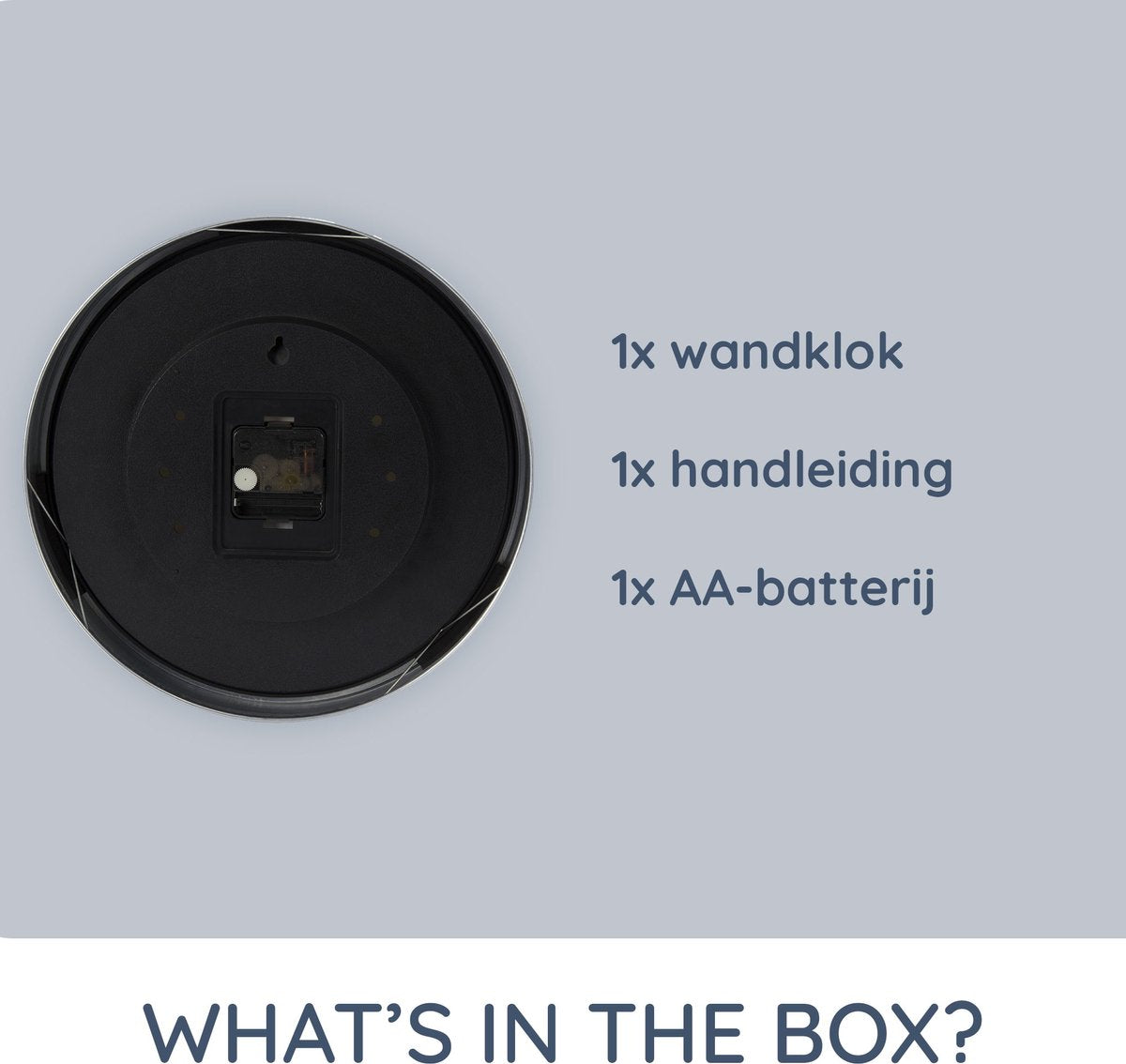 De klok heeft een quartz uurwerk. Wat betekent dat ook alweer? Dat er quartz kristallen inzitten, die altijd op dezelfde frequentie trillen. Dat zorgt voor een hele exacte weergave van de tijd. De frequentie van quartz horloges is zelfs overal in ons universum gelijk. Een quartz uurwerk werkt op batterijen (een AA-batterij in dit geval), die pas na een paar jaar aan vervanging toe is.
