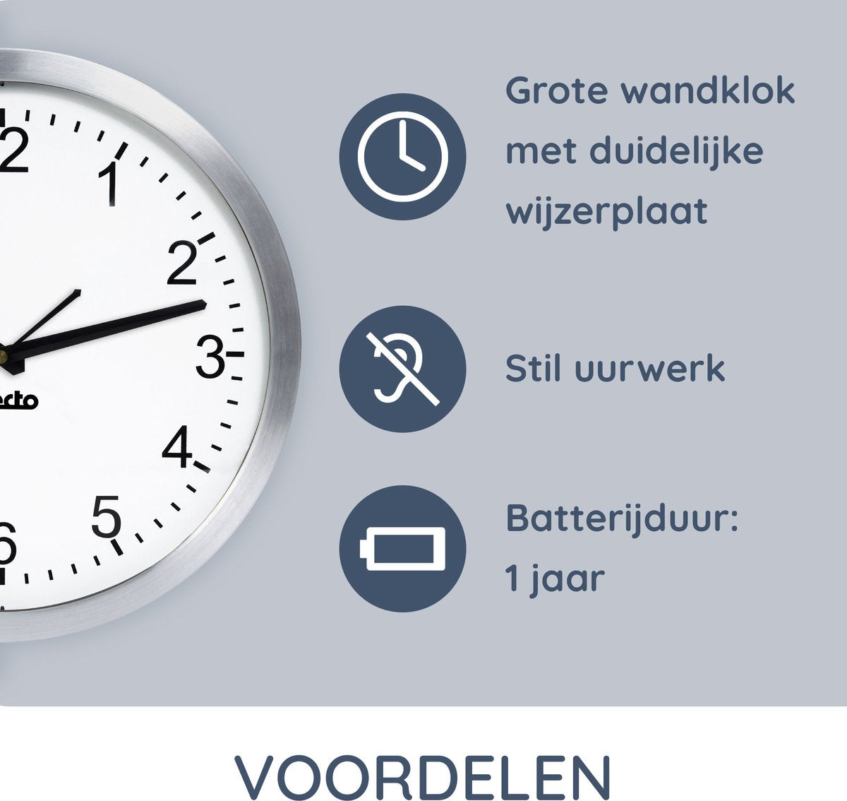 Deze aluminium klok heeft een strak design, is eenvoudig te monteren en voldoet aan onze hoge kwaliteitseisen. Je kiest voor een betrouwbaar product, tegen een aantrekkelijke prijs.