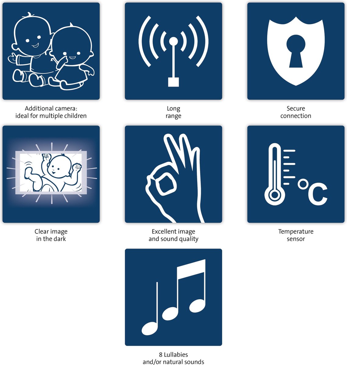 Onze designers snappen dat je de ouderunit in je woonruimte plaatst, maar ook de babyunit(s) mogen gezien worden. En dus hebben ze deze babyfoon met camera een strak uiterlijk gegeven. Stijlvol, onopvallend en klein van formaat. Een aantrekkelijk product, dat ook ‘onder de motorkap’ van uitstekende kwaliteit is. We noemen de belangrijkste functionaliteiten: