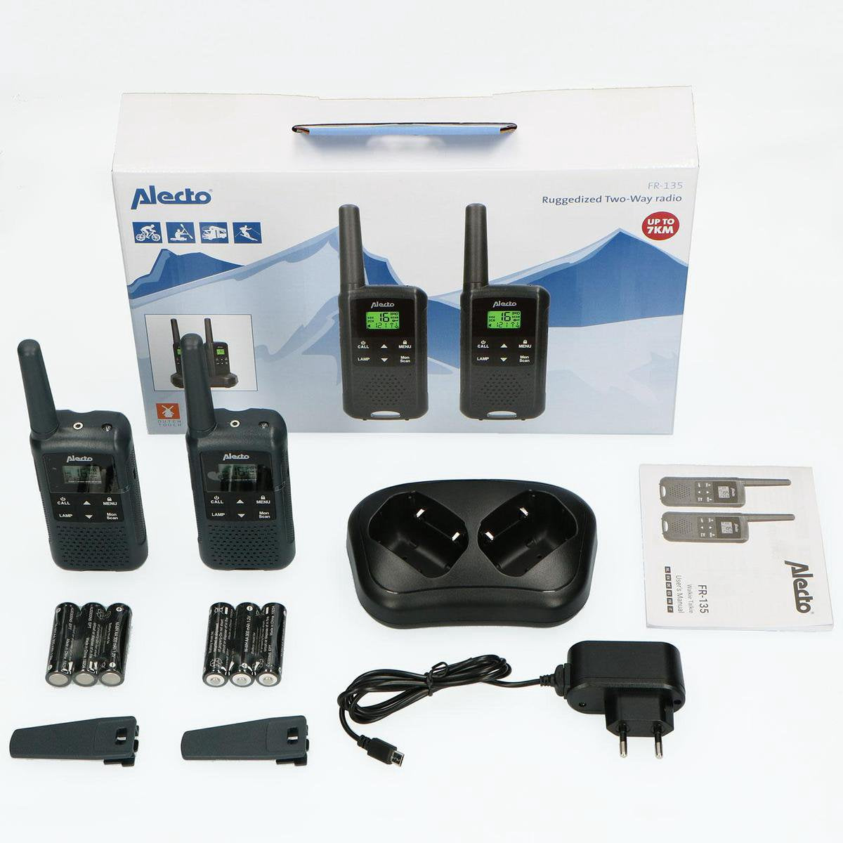 De Alecto FR-135 walkietalkie set is een ideale aanwinst voor outdoorsporten zoals mountainbiken, vissen of snowboarden. Voor bepaalde outdoorsporten is goed contact een zeer belangrijke factor. Deze handige walkietalkie set levert een betrouwbaar bereik tot wel 7 kilometer. De lange stand-bytijd van ongeveer 27 uur zorgt dat er lang mee kan werken voordat je de walkie walkie weer moet laden. Zo blijf je ook met elkaar in contact tijdens een langere campeertocht of autorit.