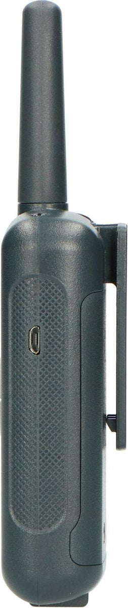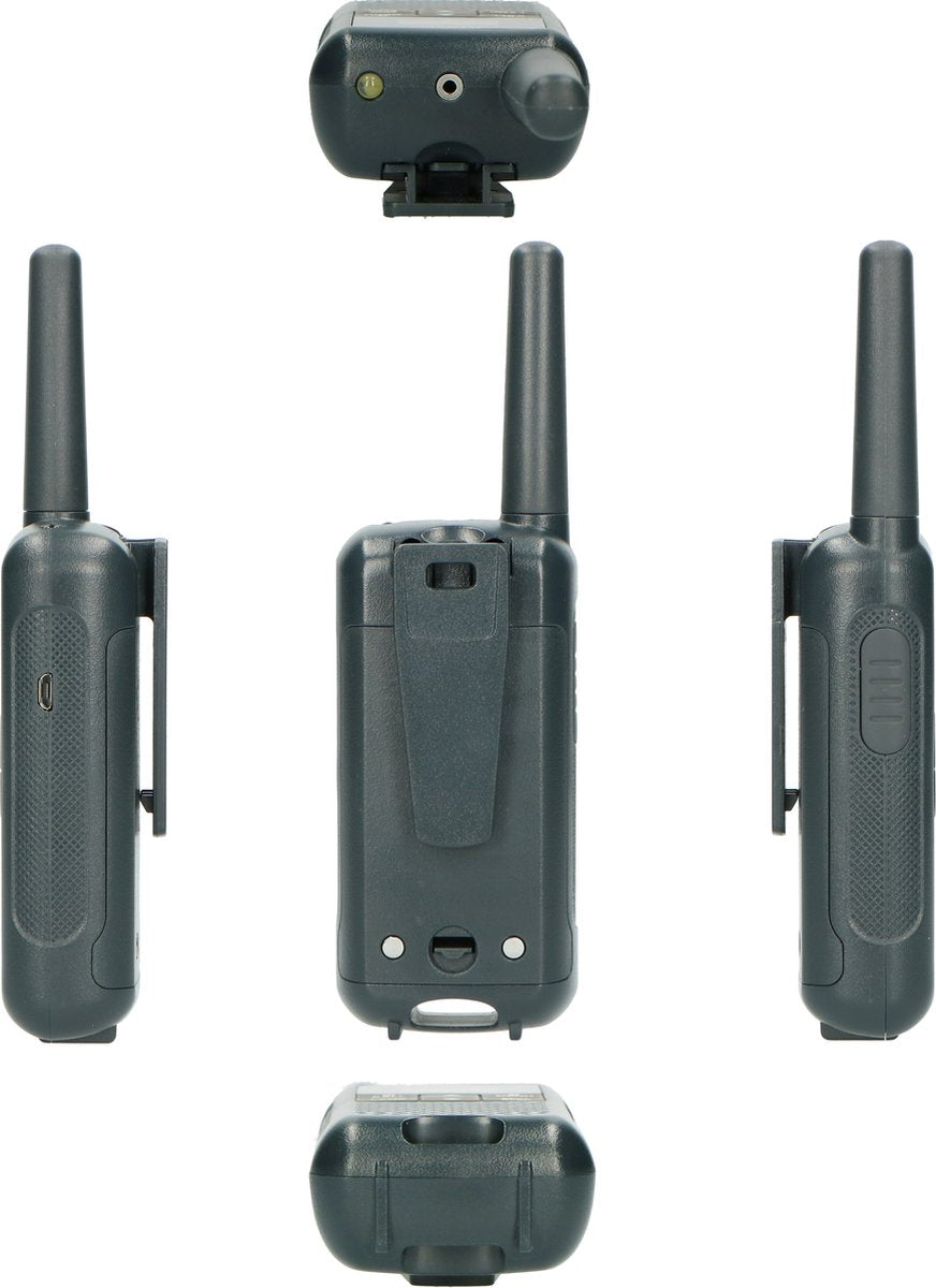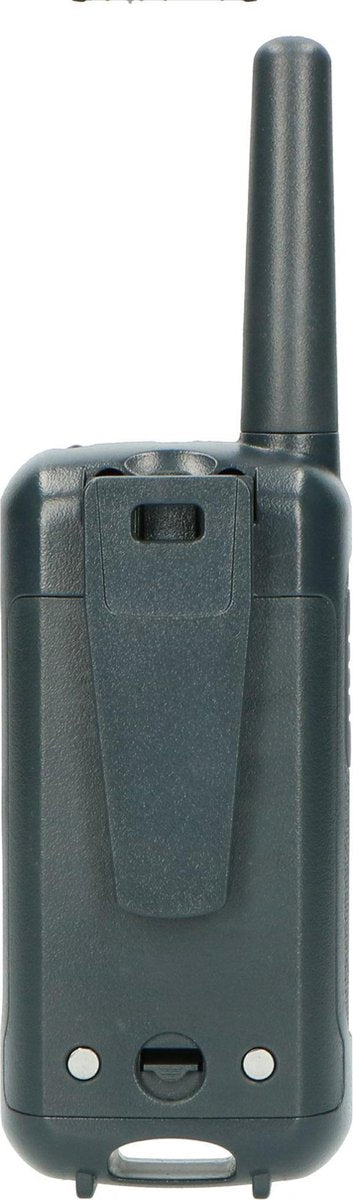 Deze robuuste walkietalkie set werkt op 3x oplaadbare AA-baterijen die worden meegeleverd. Hierdoor hoef je niet steeds een nieuwe batterijen aan te schaffen. Je zet de walkietalkies op het laadstation en na het laden zijn ze weer klaar om gebruikt te worden. Het laadstation wordt uiteraard meegeleverd. De walkietalkies geven ook een waarschuwing als de batterij bijna leeg is.