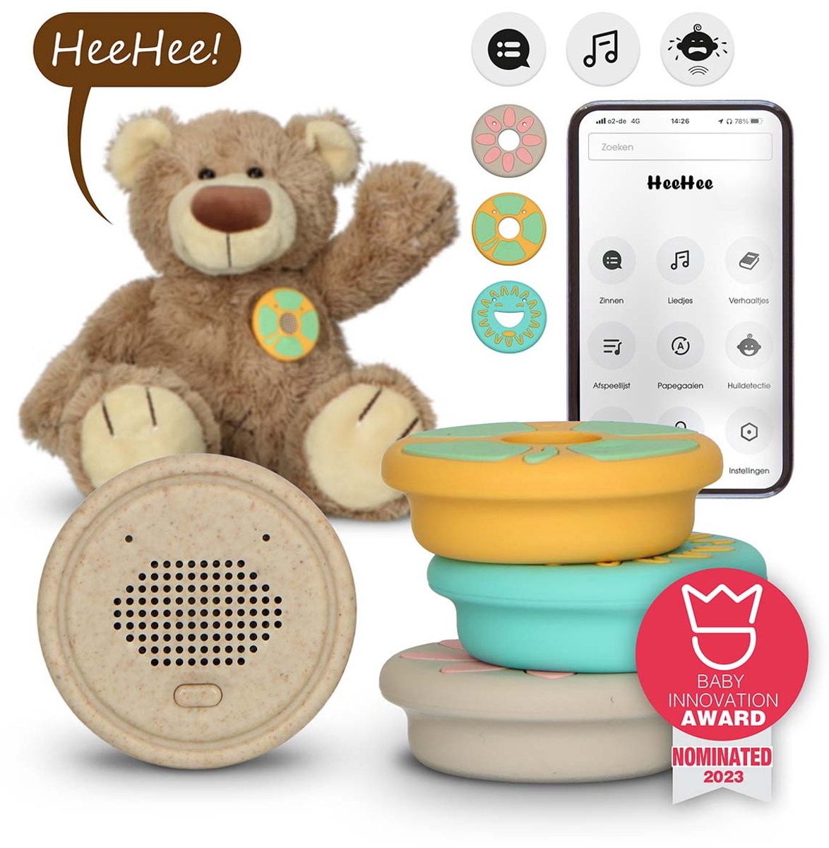 De HeeHee is geschikt voor kinderen van alle leeftijden, dus al vanaf 0 jaar! Bij pasgeboren kinderen is interactie nog maar beperkt mogelijk, alleen dit ontwikkelt zich gelukkig snel. Hoe mooi is het om al direct met een vriendje op te groeien waar je mee kunt brabbelen en later babbelen. De knuffel biedt een gevoel van geborgenheid en veiligheid. Kinderen zijn vaak onafscheidelijk van hun knuffel. De extra dimensie die de HeeHee aan de knuffel geeft maakt deze band alleen maar meer bijzonder.