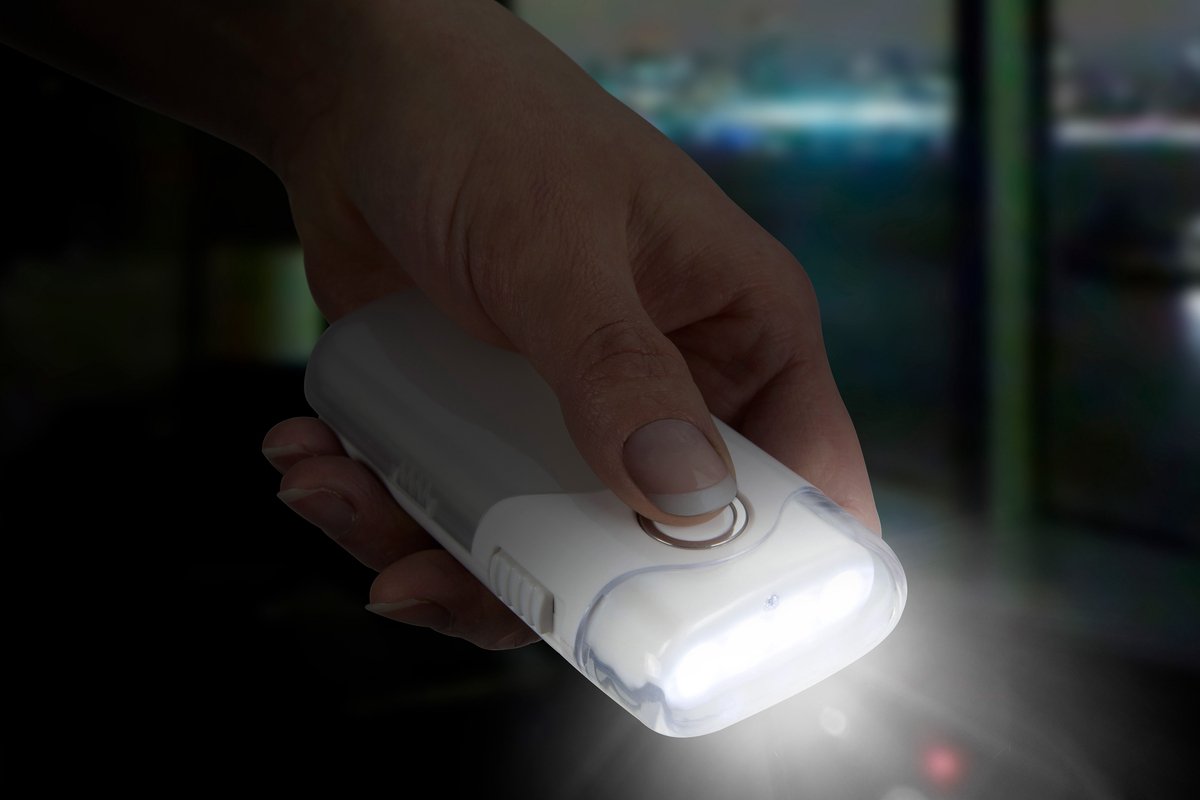 Een noodverlichting is er om je te helpen. Dan wil je geen ingewikkelde lamp met allemaal opties en knoppen, maar een slim lampje dat doet wat nodig is. En zo hebben we deze noodverlichting dus ook gemaakt. De houder is tegelijkertijd de oplader; je steekt de houder in een stopcontact en het lampje wordt via inductie (geleiding) opgeladen. Zo is je noodverlichting altijd klaar voor gebruik. Een volledig opgeladen zaklamp kun je twee uur lang gebruiken. Als lichtbron zitten er vier ledlampjes in, dus je noodverlichting geeft een heldere – en duurzame – lichtstraal.
