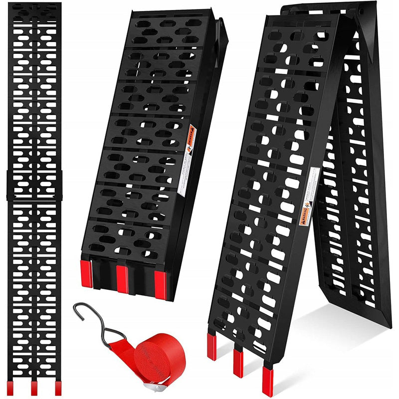 Deze ALU oprijplaat is een inklapbare aluminium oprijplaat die ideaal is voor het laden van voertuigen zoals motorfietsen, quads of grasmaaiers. Met een lengte van 2 meter en een draagvermogen van 340 kg per plaat (maximaal 680 kg per paar) biedt deze oprijplaat een robuust en antislip oppervlak voor dagelijks gebruik.