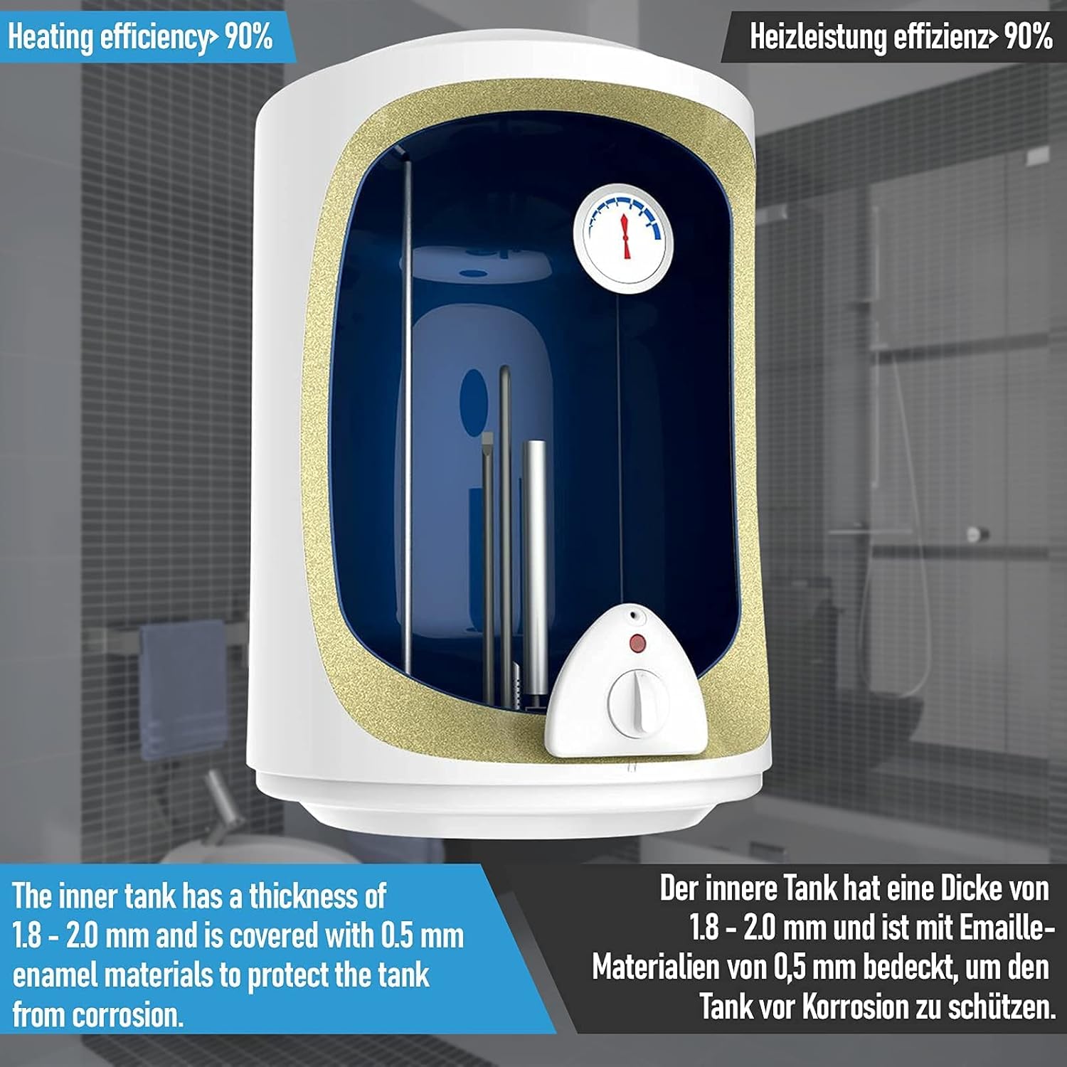 Hoge veiligheid: voldoet aan IPX4: de wandgemonteerde boiler biedt met geëmailleerde tank, veiligheidsventiel, veiligheidsthermostaat en watertemperatuurweergave optimale bescherming en betrouwbare controle.