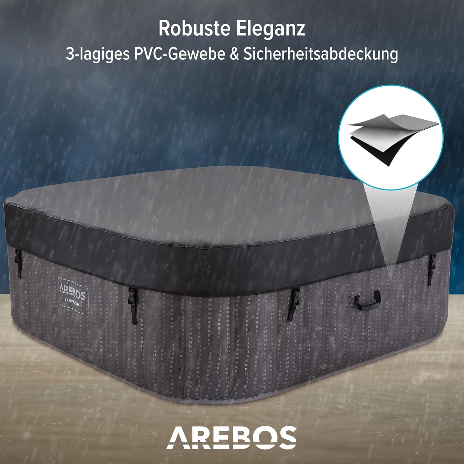 | Afmetingen van het zwembad (buiten) | 185 x 185 x 65 cm (l x b x h) |
