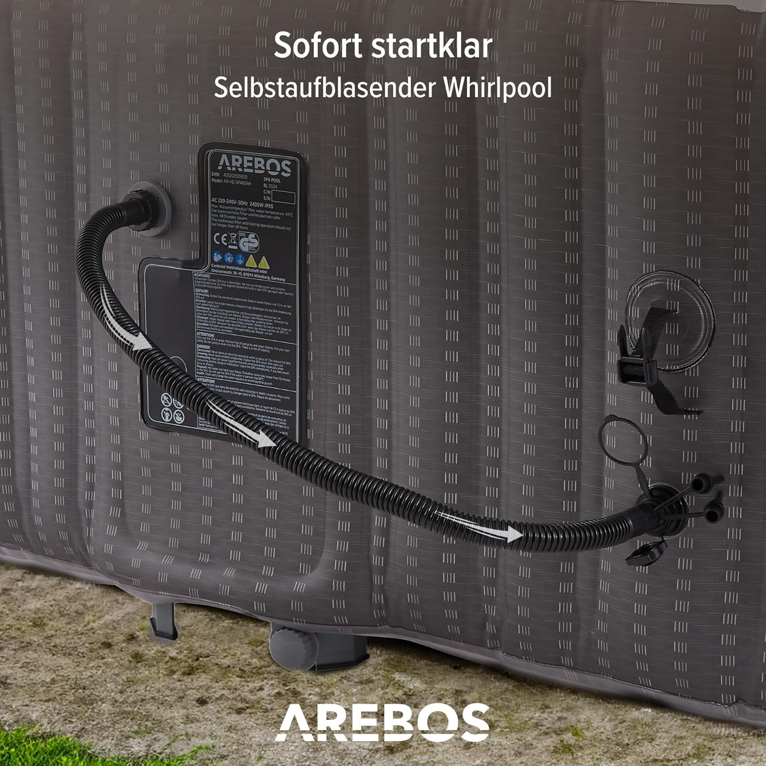 | Inhoud levering: | 1 x whirpool, 1 x reparatiepatchenset, 1 x isolerende afdekking, 1 x vloermat, 1 x filterpomp, 1 x filterpatroon |