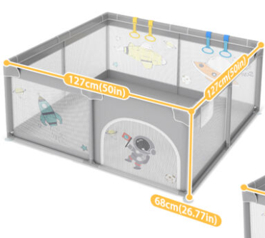 Deze box van 127 x 127 cm is ontworpen om peuters een veilige en comfortabele speelplek te bieden. Dankzij de antislipbodem en het stevige frame kunnen kinderen leren lopen en hebben ze een veilig gevoel. Ouders kunnen hun baby in de gaten houden dankzij de ademende mesh panelen, die van meerdere kanten zichtbaar zijn.