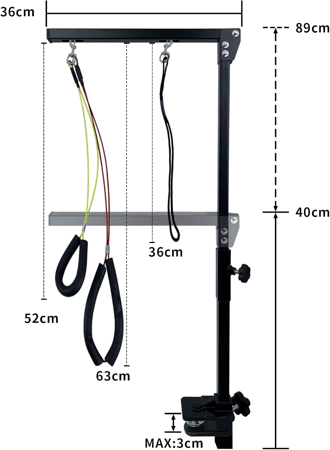 3. De verzorgingsarm kan door een knop te draaien in de hoogte worden versteld om aan honden van verschillende afmetingen te voldoen.
