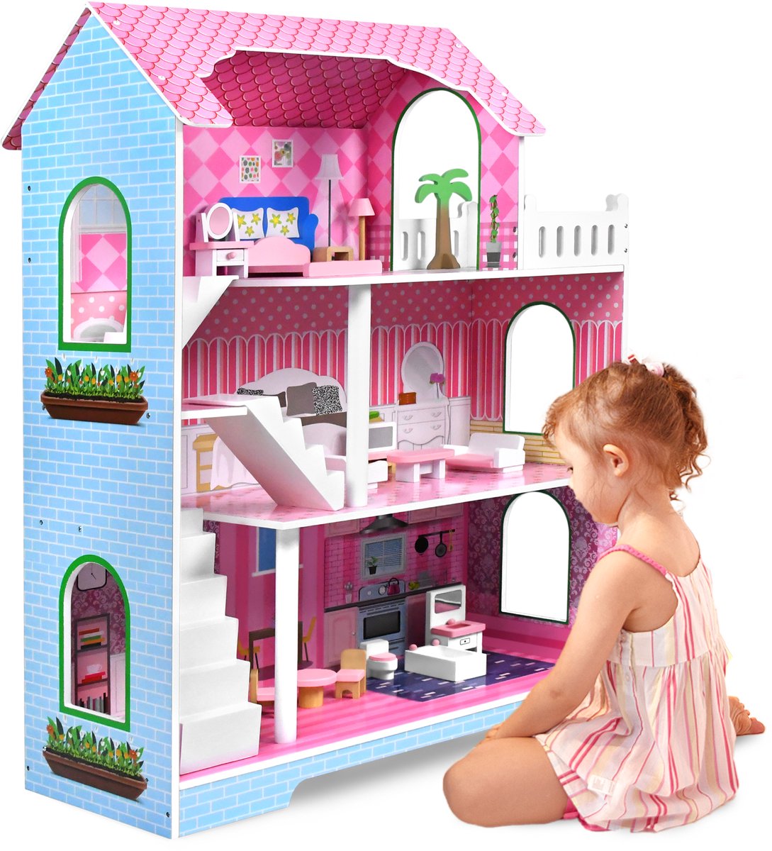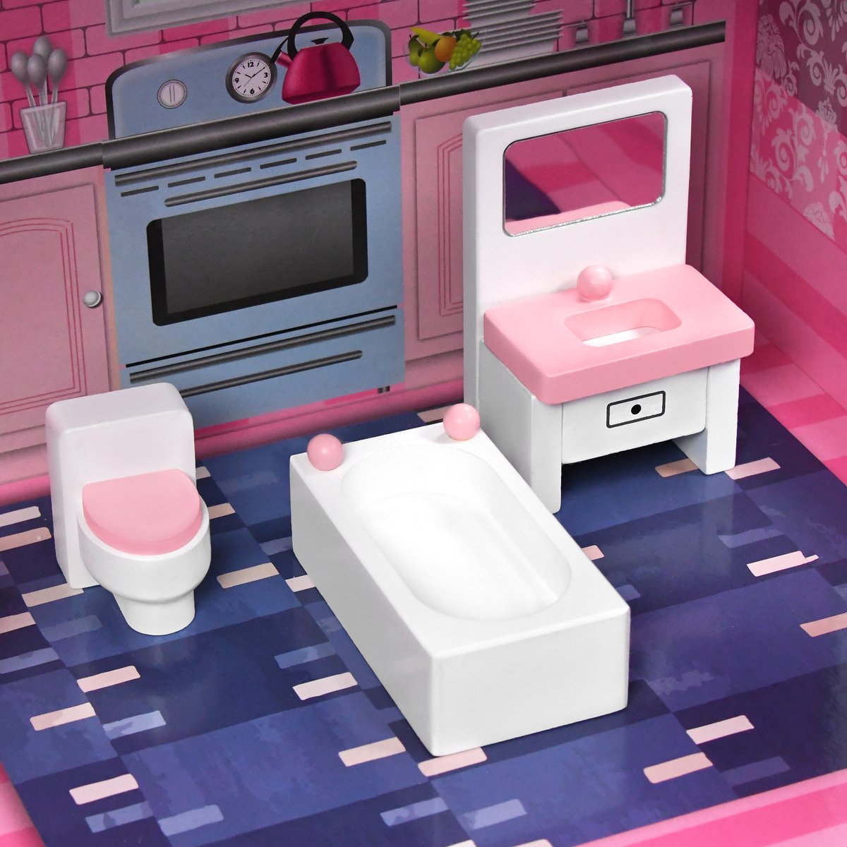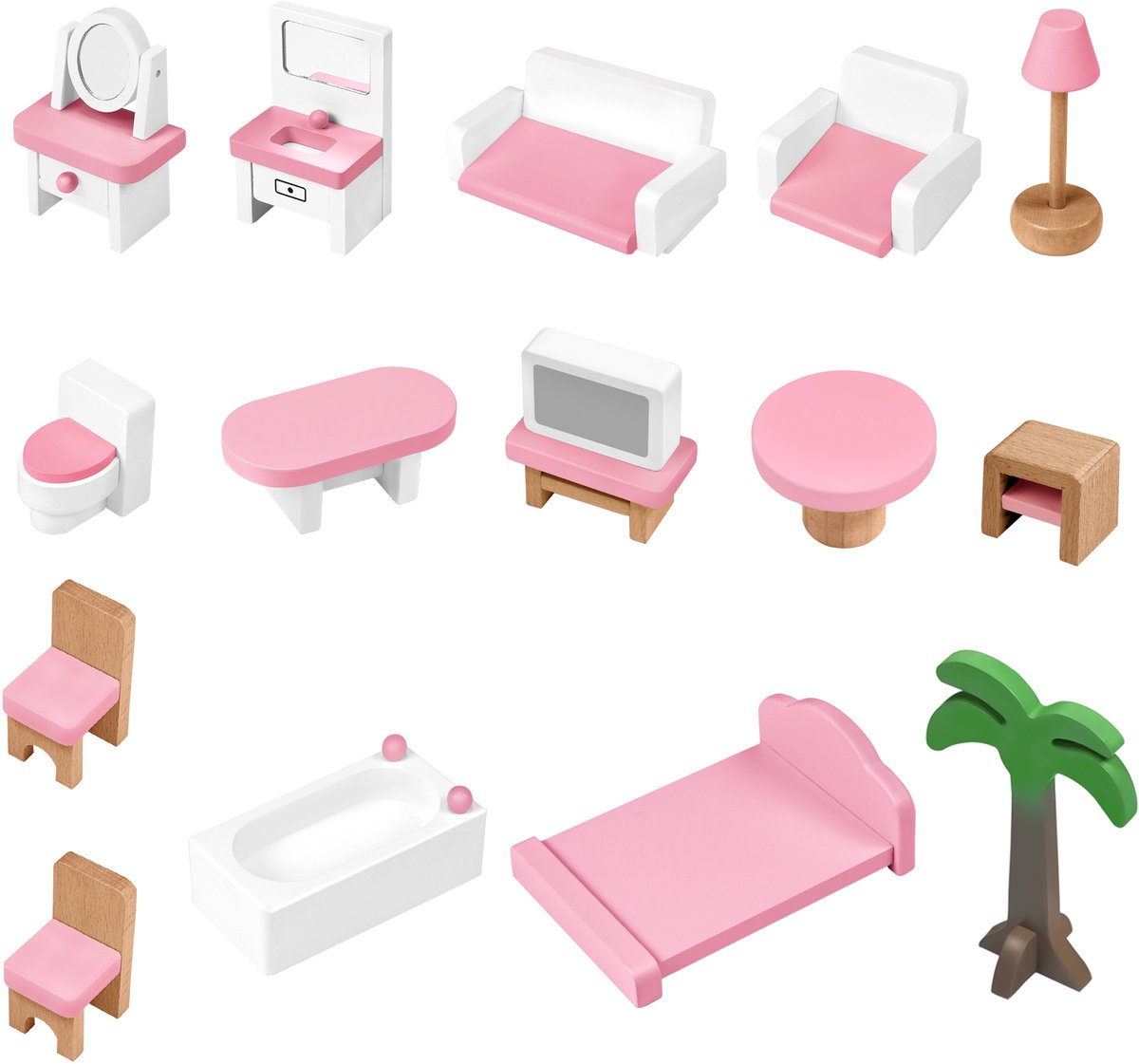 -Perfect cadeau voor meisjes. Ons houten poppenhuis is een van de beste cadeaus die je een kind kunt geven. Met dit tijdloze cadeau kunnen je kinderen urenlang opgaan in hun speciale fantasiewereld. Kinderen kunnen de meubels herschikken en levensechte scenario's in hun hoofd creëren, wat de cognitieve en sociale ontwikkeling stimuleert.