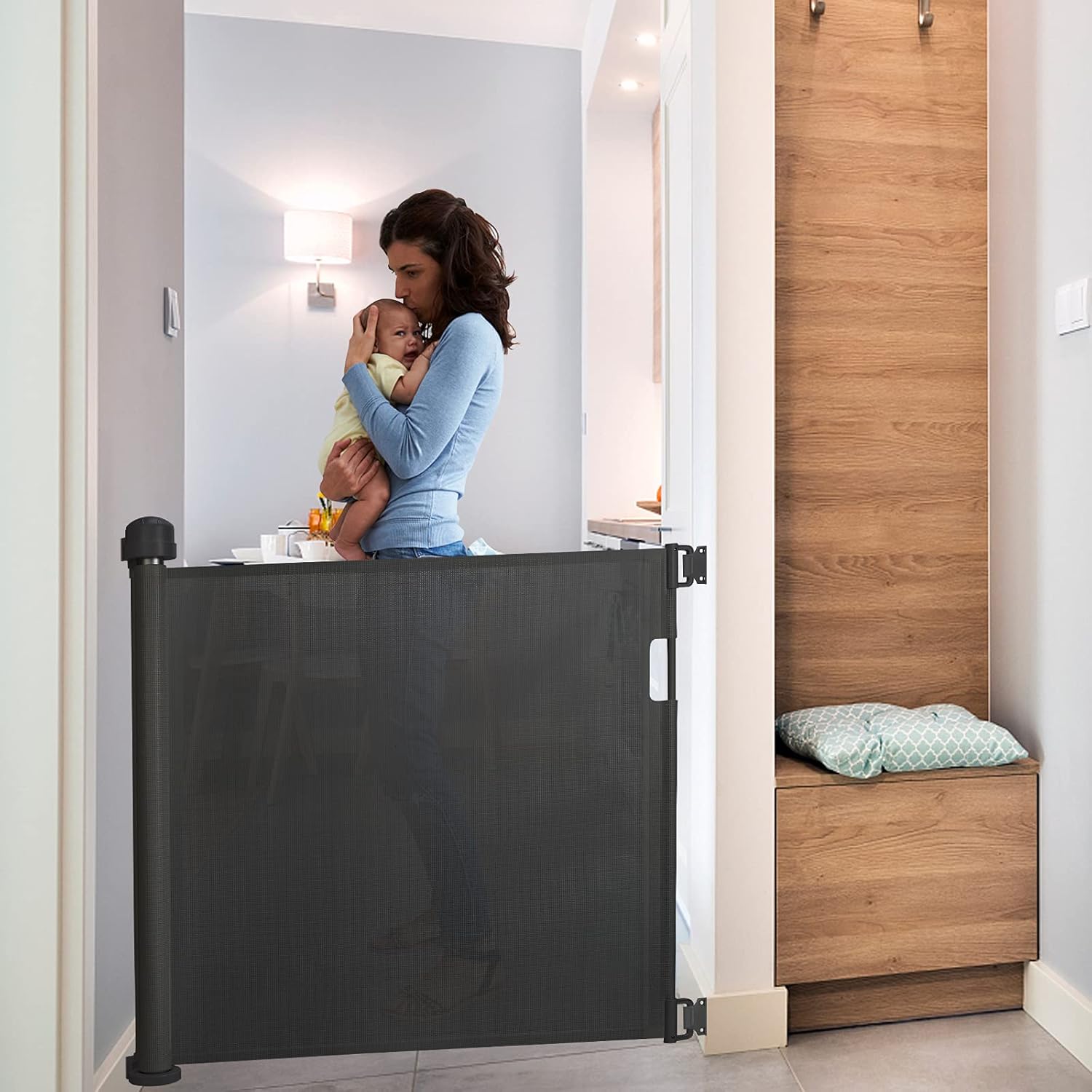 Perfecte oplossing voor deuren en trappen, die de weg voor baby's en huisdieren blokkeren en de veiligheid in het hele huis garanderen. Kan boven en onder van trappen, deuren, gangen, binnen- en buitenruimtes worden geïnstalleerd, montage aan de binnen- en buitenkant een deur, maakt babyspeelomgeving veiliger.