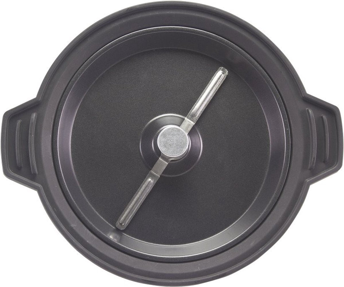 Aan het einde van het koken kan het deksel als grote container worden gebruikt om mee te nemen