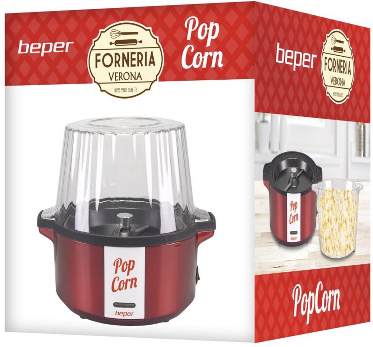Aan de binnenkant van de machine vind je een praktische maatbeker, die perfect geschikt is voor de bereiding van 75 gram popcorn. Draai de bovenkant om een praktische container voor het serveren van je hete popcorn. Deel met je gezin het plezier om een film met heerlijke popcorn te bekijken.