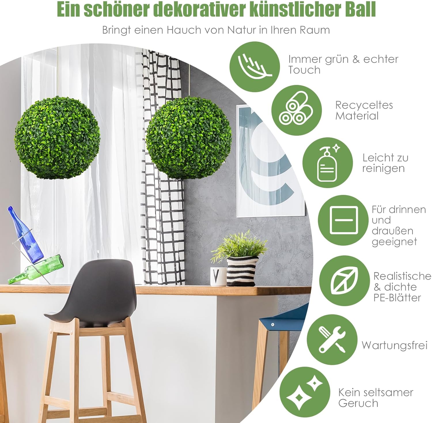 Realistische kunstsnijbal: de kunstplantenbol bestaat uit hoogwaardig kunststof met moderne technologie en elk blad bestaat uit polyethyleen met hoge dichtheid, dat milieuvriendelijk en niet giftig is. Het natuurlijke, realistische uiterlijk geeft elke ruimte onweerstaanbaar uniek en elegantie.