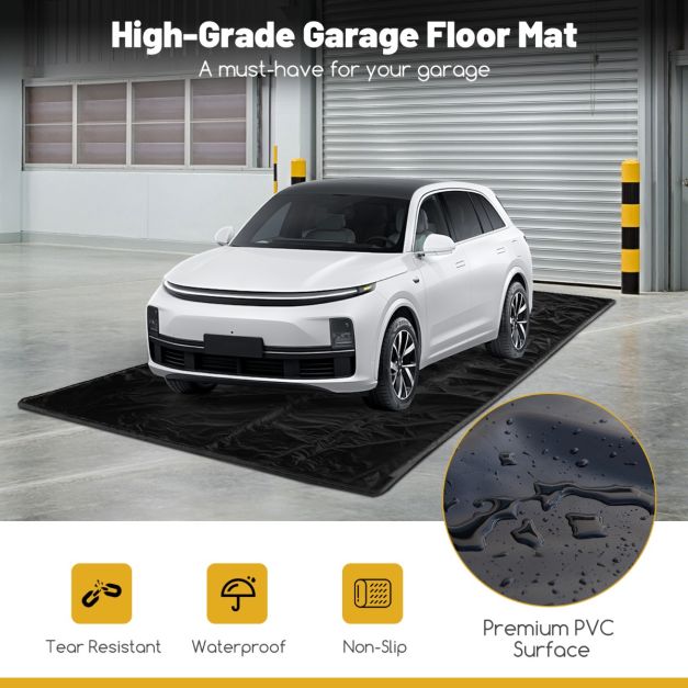 【Hoogwaardig PVC-oppervlak】: Met een PVC-oppervlak is deze hoogwaardige garage olie mat niet alleen waterbestendig en antislip, maar ook scheurvast voor jarenlang gebruik. En het veroorzaakt geen harde geluiden wanneer het voertuig eroverheen glijdt.