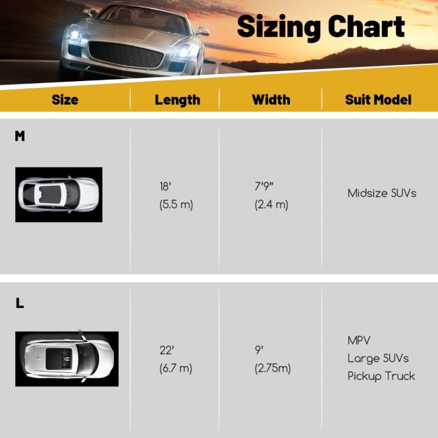 Grote maat (550 x 240 cm) voor de meeste middelgrote SUV's
