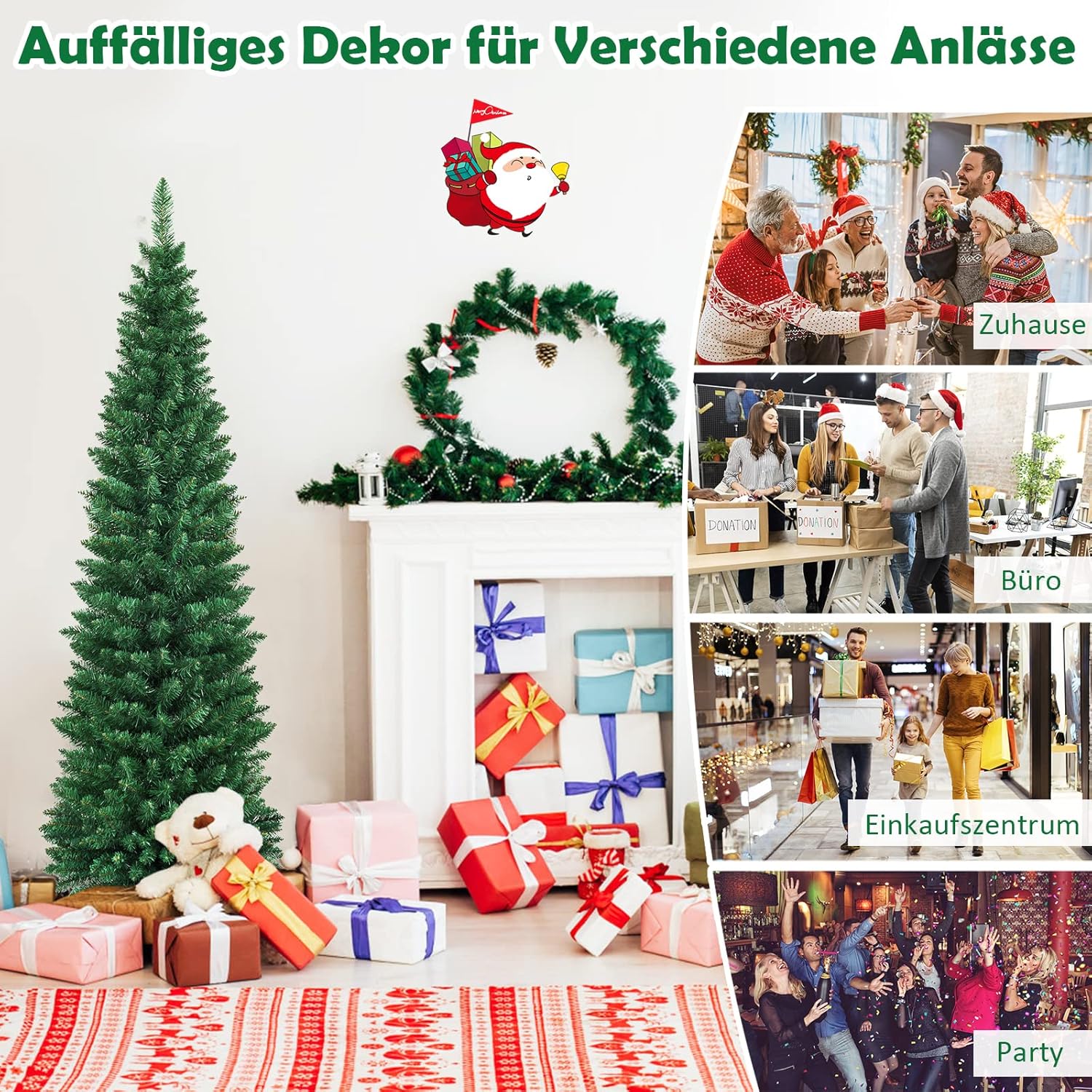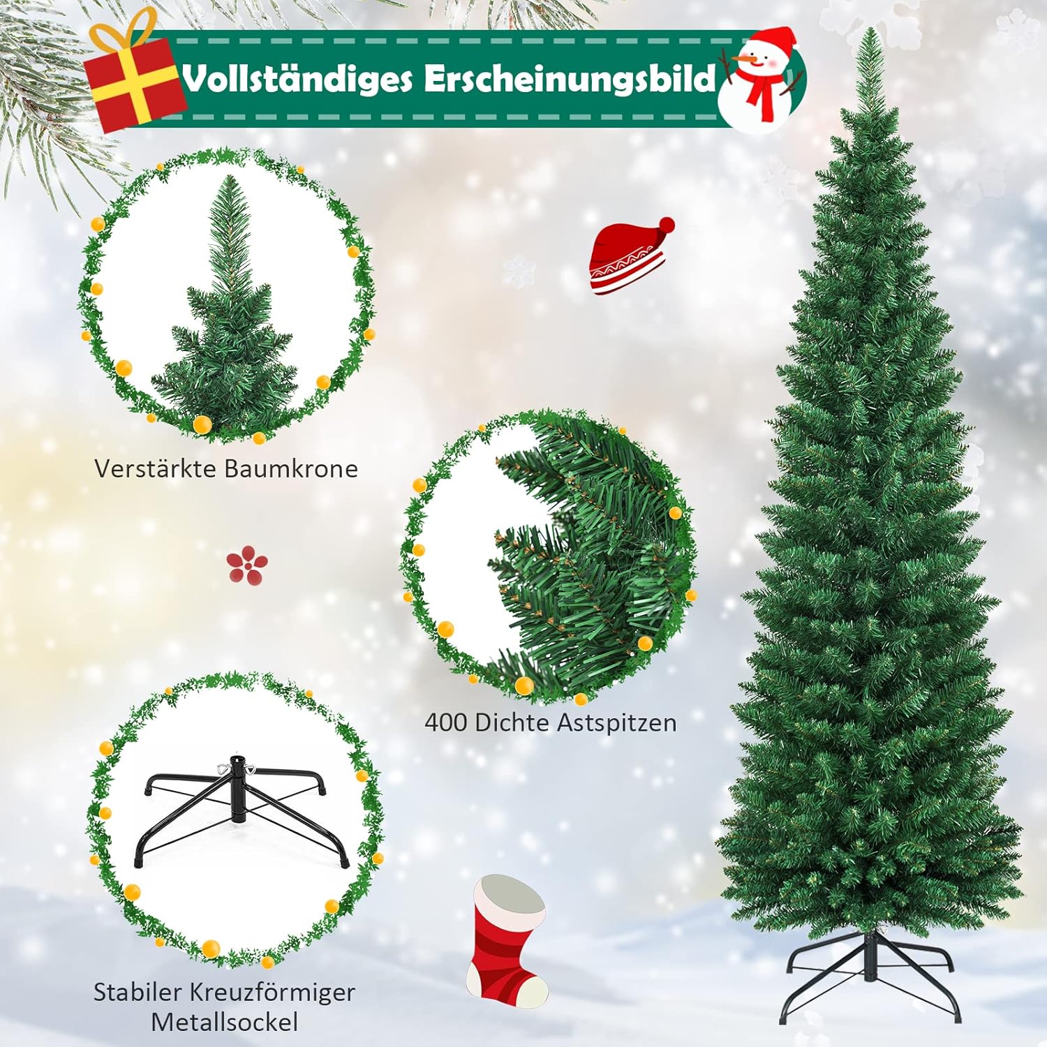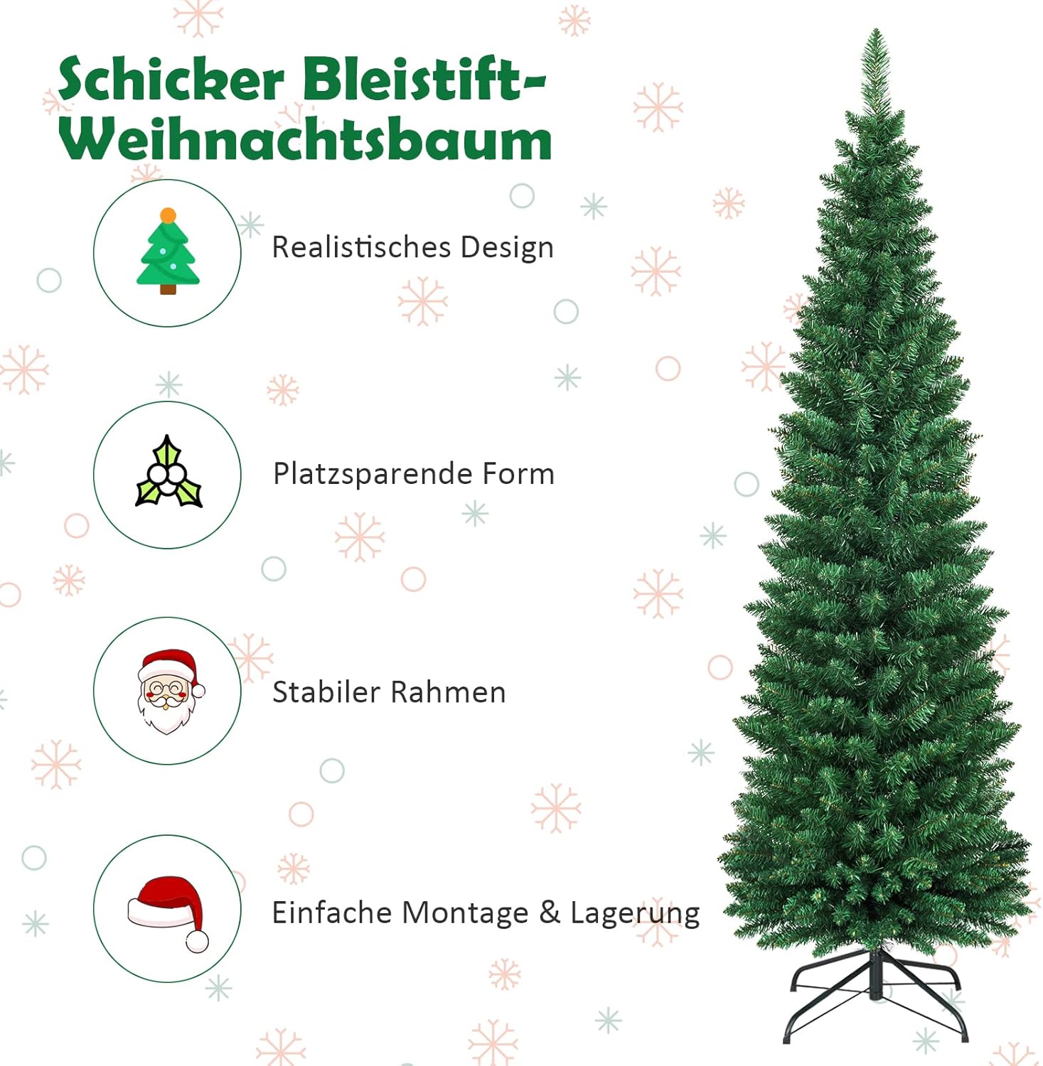 COSTWAY Kerstboom met potlood, 180 cm, kunstkerstboom met metalen standaard, pvc-naalden, kunstboom, ideaal voor thuis, kantoor, winkels en hotels, groen (180 cm)