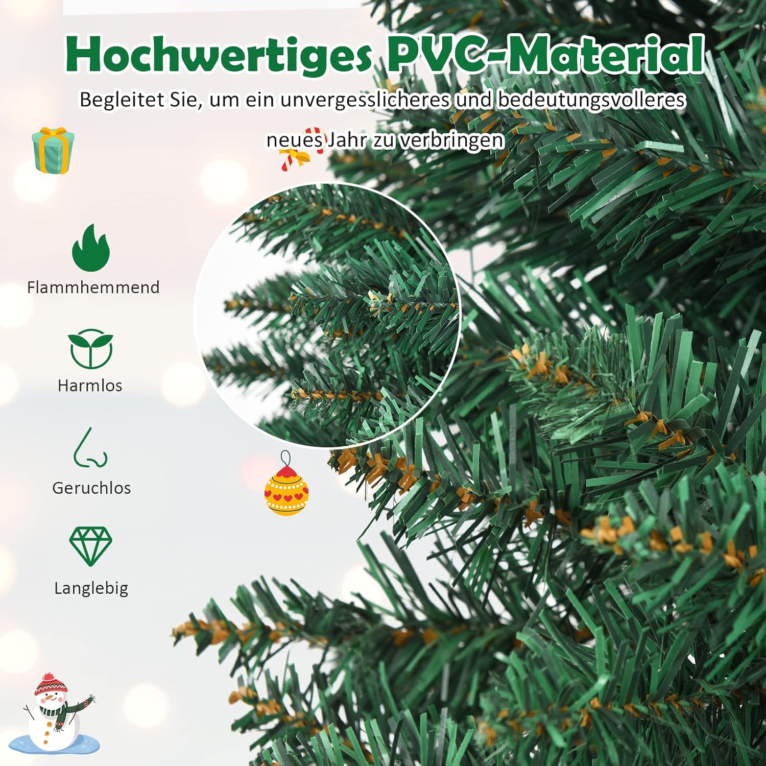 Dichte takken en realistische pvc-naalden: de naalden van deze kerstboom zijn gemaakt van hoogwaardig, milieuvriendelijk pvc, dat absoluut veilig in gebruik is en er nog echt uitziet. Bovendien helpen de 220/400/700/1000 takken en de eenvoudige, groene kleur om een echte kerstboom na te bootsen.